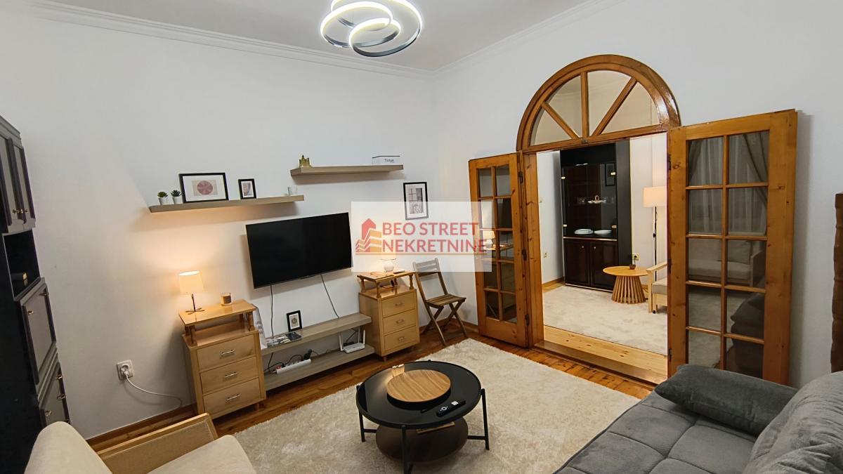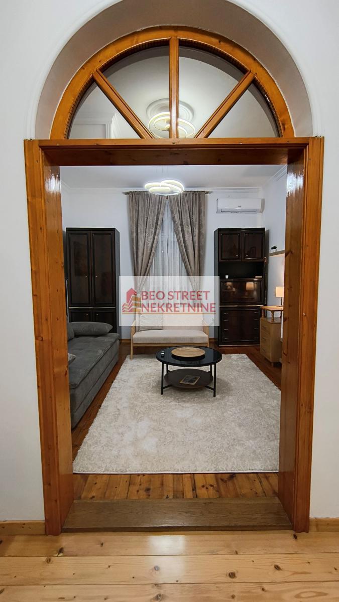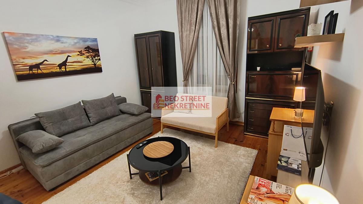 Opis: Izdaje se udoban, kompletno opremljen i renoviran, jednoiposoban stan površine 35m2 na Dorćolu, u mirnoj ulici Komnen Barjaktara, udaljene oko 800m od Trga republike.