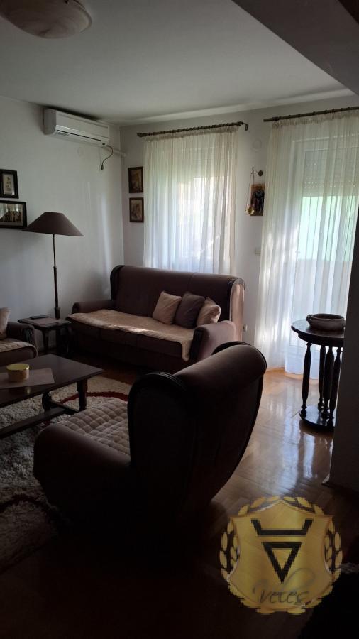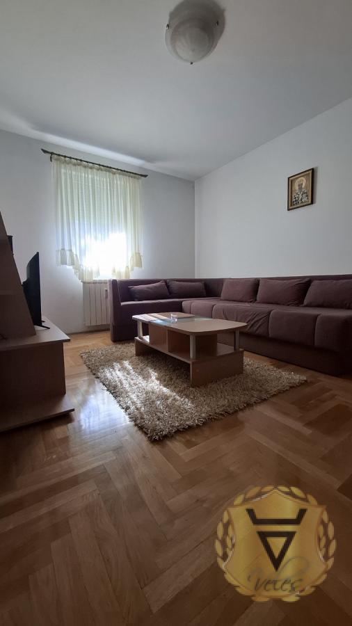 Opis: Jako svetao, kompletno namešten, opremljen novom belom tehnikom i kompletnim pokućstvom. Stan ima veliku terasu sa baštom (oko 50m2). Nalazi se u neposrednoj blizini osnovne škole, vrtića, velikog parka, sportsko rekreativnog centra.