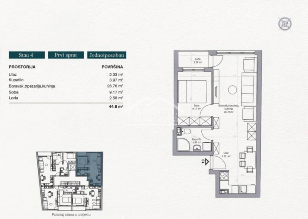 Opis: Predstavljamo vam stan u savremenoj, pažljivo projektovanoj novogradnji koja spaja moderan dizajn, funkcionalnost i visok standard gradnje. Zgrada je izvedena od vrhunskih materijala, uz posebnu pažnju posvećenu dugotrajnosti, udobnosti i energetskoj efikasnosti.