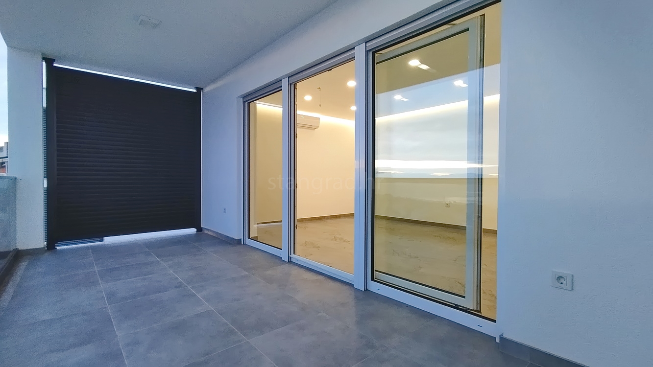 Unutar iznimno atraktivne zgrade, apartman je smješten na 2. etaži. Površina ovog apartmana iznosi ukupno 62 m2. U navedenoj površini sadržani su ulazni hodnik, dnevni boravak i kuhinja s blagovaonicom, 2 spavaće sobe, kupaonica i natkrivena terasa. Vlasnik apartmana može neometano koristiti sve pripadajuće zajedničke dijelove i prostore nekretnine. Vlasnik apartmana na raspolaganju će imati jedno parkirno mjesto. Osim ranije navedenih karakteristika, apartman ima odličan položaj i usmjerenost koji njegovim žiteljima osiguravaju prekrasan otvoreni pogled na more.