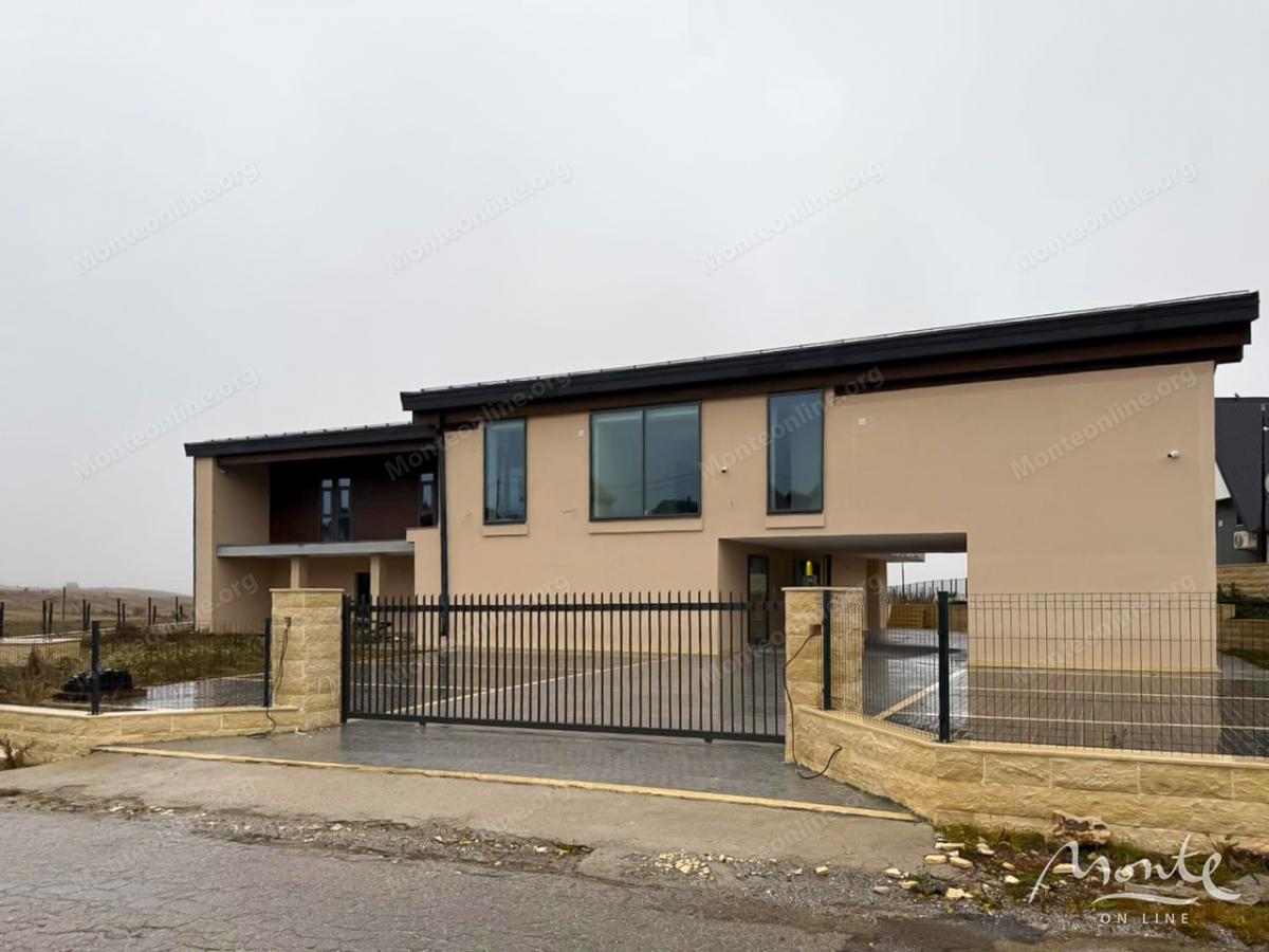 Kuća je dizajnirana kao luksuzni projekat za cjelogodišnji život i rekreaciju. Visoki plafoni, masivne drvene grede, veliki panoramski prozori s pogledom na Durmitor, prirodni kamen, vrhunska završna obrada i prostrani rasporedi stvaraju osjećaj prostora, svjetlosti i jedinstvene atmosfere planinskog odmarališta....
