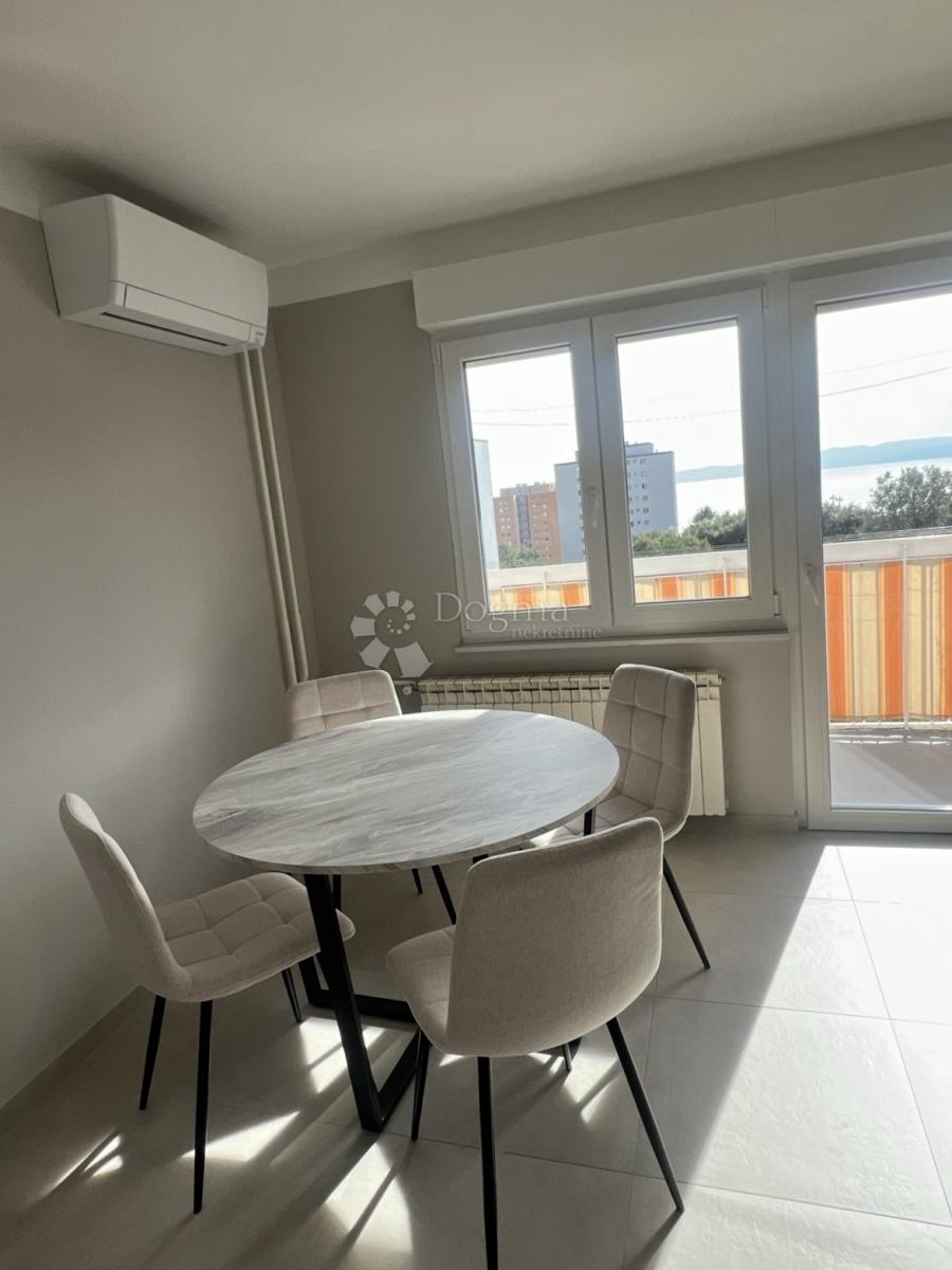 Sastoji se od dvije spavaće sobe koje su kompletno uređene i opremljene, idealne za studente (pisaći stol, Tv, klima, bračni krevet, ormar); kuhinje s blagovaonicom koja je opremljena svim potrebnim aparatima (pečnica, napa, perilica suđa, indukcijska ploča, hladnjak, klima). Iz blagovaonskog dijela stana izlazzi se na balkon južne orijentacije s panoramskim pogledom na Kvarner. Prostrani hodnik i lijepo uređena kupaonica nadopunjuju ovaj moderan stan. U kupaonici se nalazi perilica /sušilica koja će dodatno olakšati svakodnevnicu.