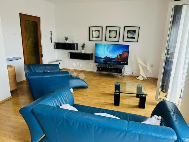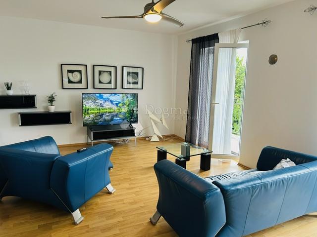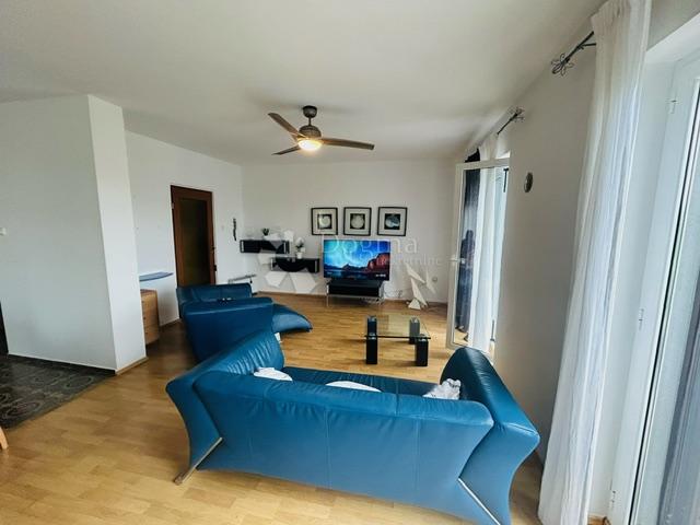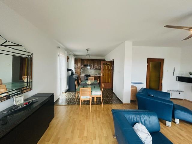 Opis: U Pobrima, naselju iznad Opatije, u mirnoj ulici, okruženoj zelenilom, iznajmljuje se etaža kuće. Stan se nalazi na drugom katu, a prostire se na 120 m2. Čine ga kuhinja, blagovaonica i veliki dnevni boravak, open-space koncepta, tri spavaće sobe, kupaonica i odvojeni wc. Duž cijele etaže, proteže balkon s prekrasnim pogledom na zelenilo i more.