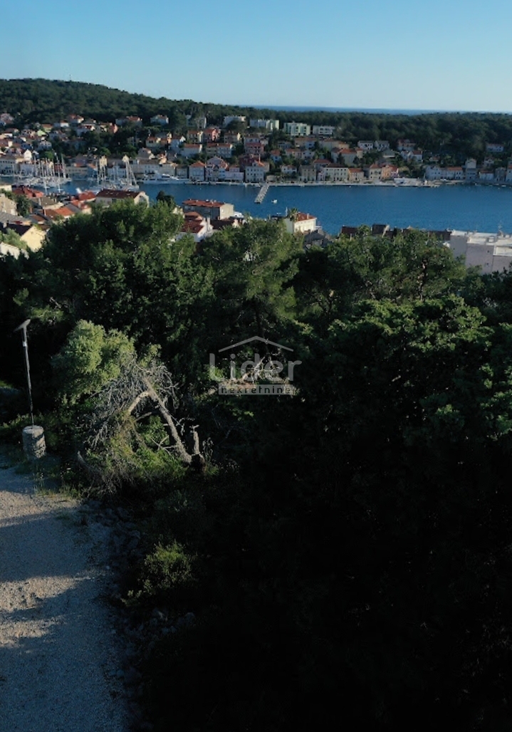 Zemljište je pripremljeno za gradnju, pravilnog oblika i poravnano, orijentirano prema zapadu prema uvali grada Mali Lošinj.