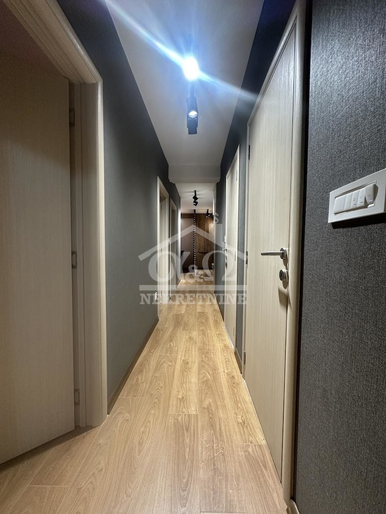 Opis: Moderan, luksuzno opremljen troiposoban stan u zgradi novije gradnje u Erdogliji. Struktura: hodnik, kupatilo, odvojen toalet, ostava, dnevni boravak sa trpezarijom i kuhinjom, tri spavaće sobe. Iz svake prostorije se izlazi na veliku zastakljenu terasu. Stan je nov – u njemu se boravilo svega nekoliko puta, modernog enterijera, u kom je sve kvalitetno urađeno. Ima funkcionalan raspored prostorija, prostran je i svetao. Odmah je useljiv i prodaje se polunamešten. Idealan za porodično stanovanje. Stan se nalazi na odličnoj i izuzetno traženoj lokaciji sa svim pogodnostima savremenog stanovanja. Postoji mogućnost kupovine parking mesta. Šifra oglasa: 1611-1