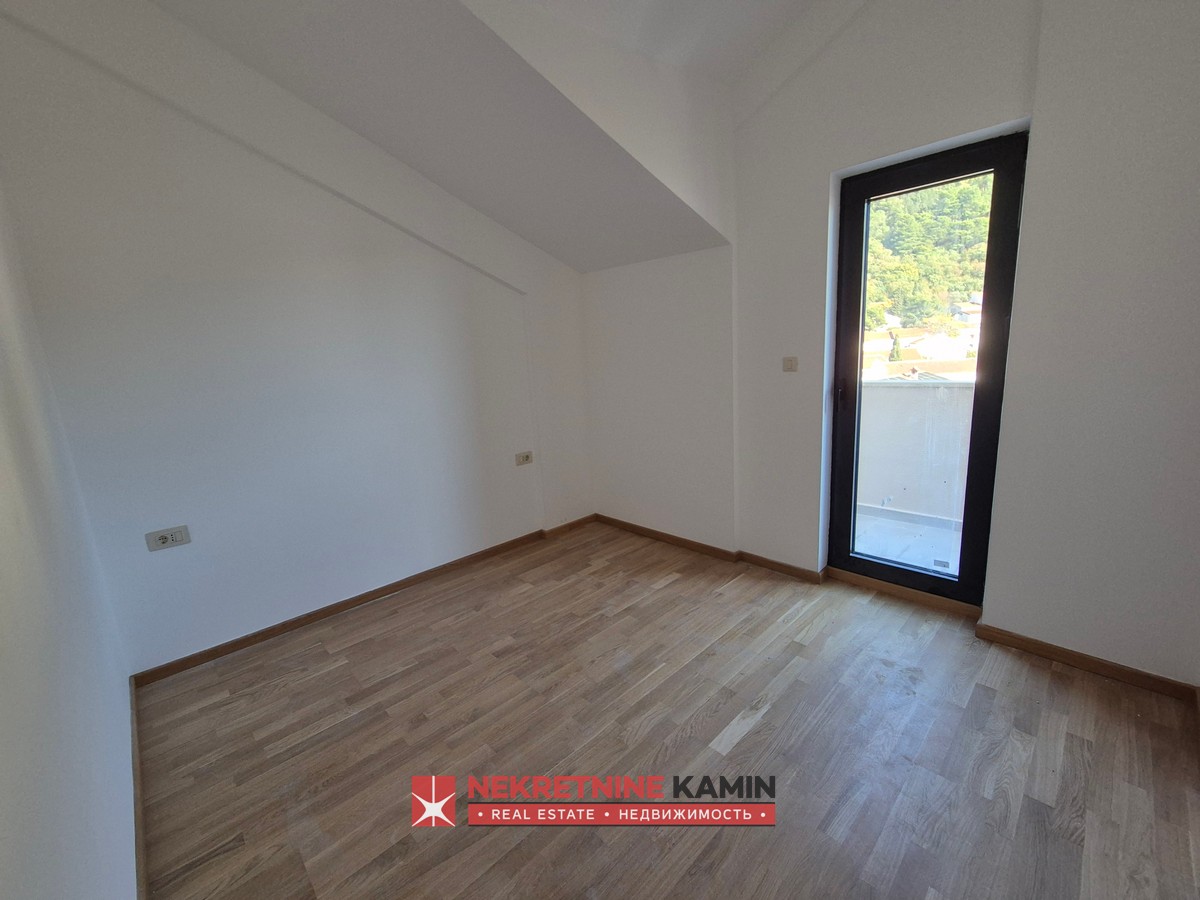 Sastoji se od hodnika, dnevne sobe sa kuhinjom, dvije spavaće sobe, kupatila i terase sa pogledom na more.
