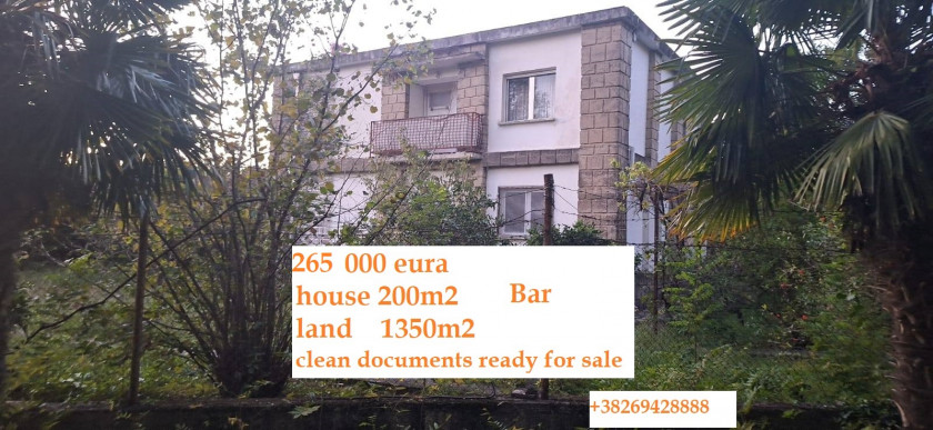 Vrsta: Prodajem Kuću Područje: Bar Lokacija: Bar Centar Cijena: €265.000 Stambena Površina: 200 m2 Zemljište: 1.350 m2 Od Mora (m): 4000