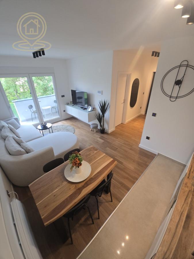 Stan je potpuno nov sa novim nameštajem i belom tehnikom ,daljinska kontrola osvetljenja, roletne,grejanja...sve pomocu mob aplikacije.