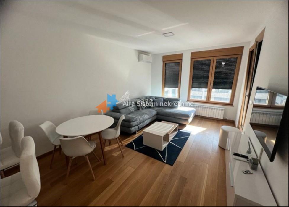 Opis: Izdaje se luksuzno opremljen dvosoban stan od 52 m² u stambenom kompleksu Exing Home 65, na Novom Beogradu, u Bloku 65. Stan se nalazi na sedmom spratu zgrade od ukupno devet spratova, sa liftom i obezbeđenjem.