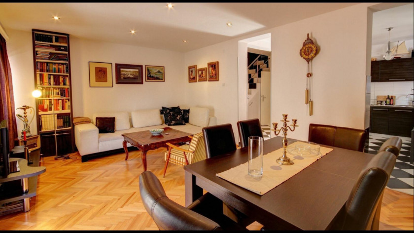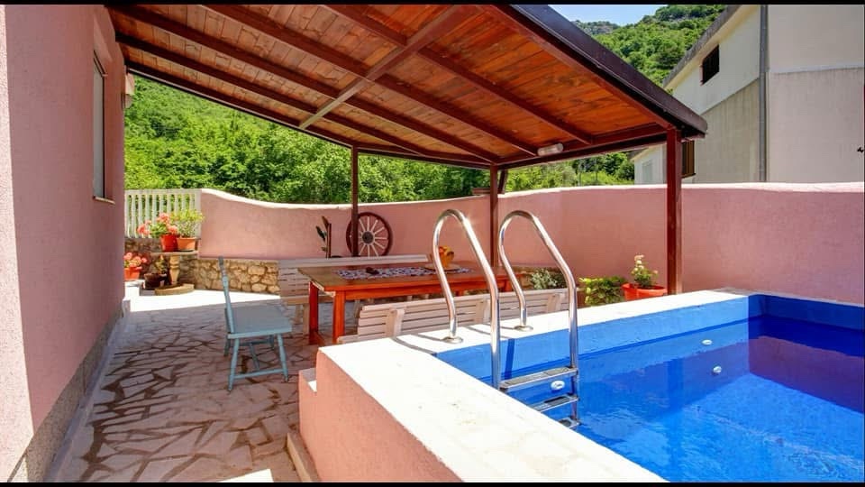 Opis: Izdajem kucu povrsine 120 m2, na duzi period sa bazenom, 2 spavace sobe, 2 kupatila, dnevna soba, kuhinja, 3 terase. Cijena je 1400e za mjesecno placanje, 1200e ukoliko se placa godinu unaprijed
