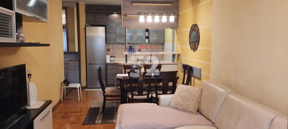 Stan je moderno namešten, sa ugradnim plakarima i novijom belom tehnikom. Zgrada je čista i uredno održavana. Grejanje je centralno preko kalorimetara, a stan poseduje i klima uređaj.