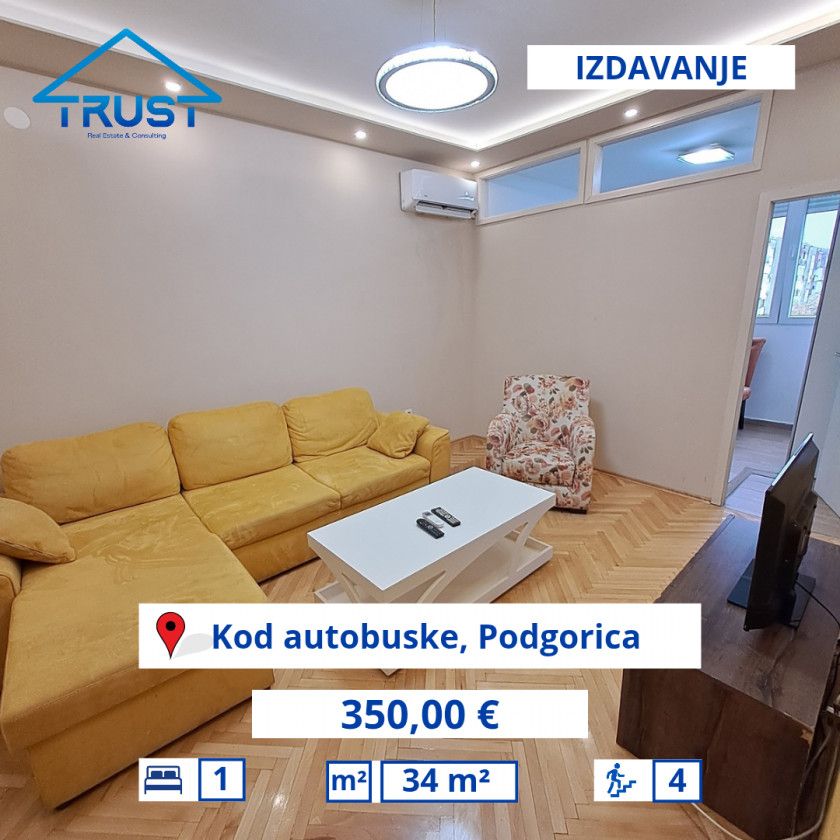 Opis: Izdaje se namješten jednosoban stan površine 34 m²!