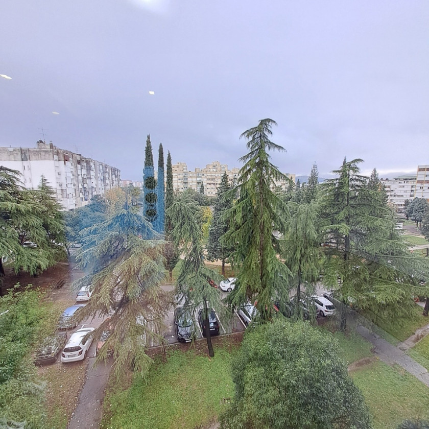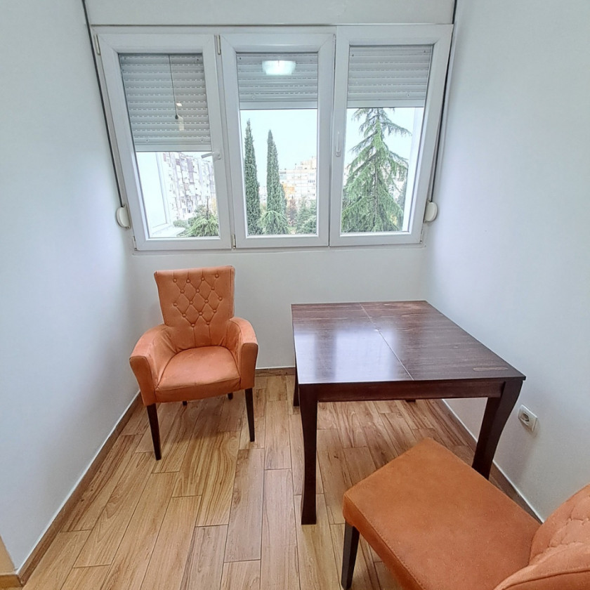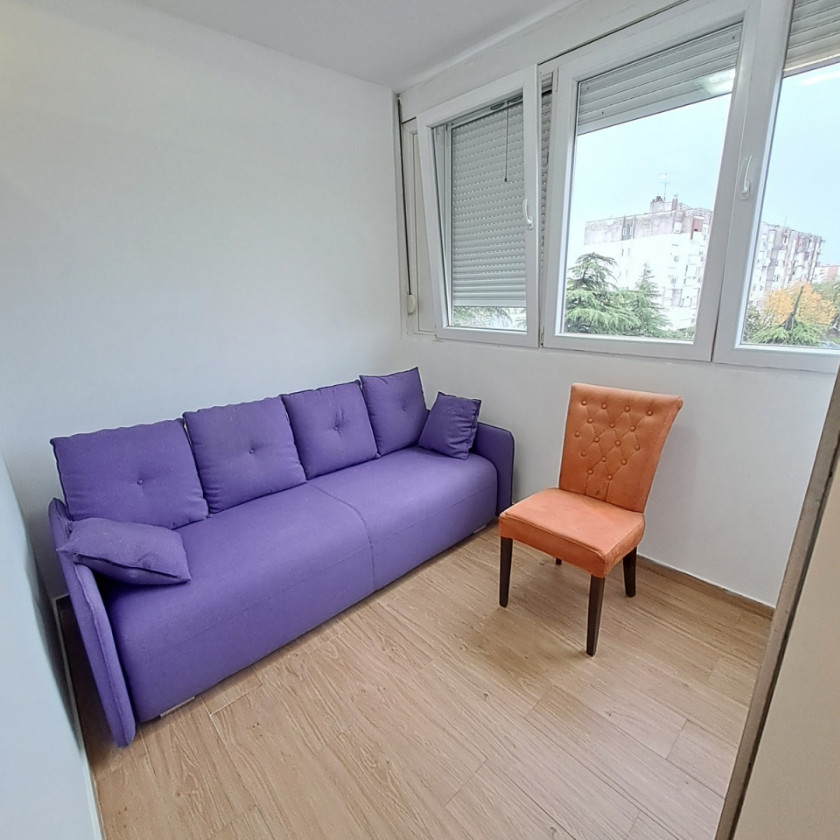 Stan je na 4. spratu zgrade koja posjeduje lift. Kompletno je renoviran prije 5 godina. Nalazi se na odličnoj lokaciji, preko puta autobuske stanice, a u blizini Gintaša, vrtića, osnovne škole... Dvije srednje škole su na 5 min hoda, dok je do centra grada potrebno 10 min. Stan ne posjeduje terasu.
