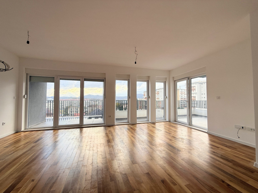 Opis: Na prodaju prostran trosoban penthouse površine 131m2 pozicioniran na šestom spratu manje stambene zgrade iza Central pointa.