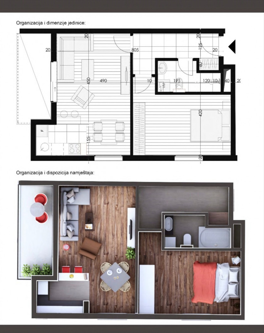 Opis: Prodaje se jednosoban stan u izgradnji 56m2,u novoj zgradi, Momisici, Podgorica. Stan se nalazi na 1. spratu nove stambene zgrade. Objekat posjeduje lift a buducim kupcima je dostupna i mogucnost kupovine garaznog mjesta. Struktura stana: spavaca soba, kupatilo, dnevna soba sa kuhinjom i trpezarijom i terasa. Zgrada je u izgradnji, a planirani zavrsetak radova je ljeto 2026 godine. Stan predstavlja odlicnu priliku za mirno i kvalitetno porodicno stanovanje, kao i investiciju.