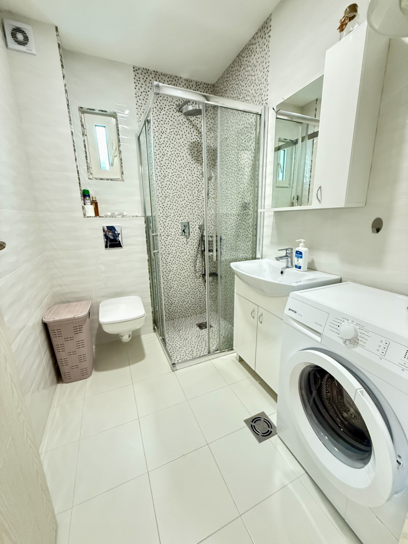Opis: znajmljivanje stana u Bečićima (Novi Bečići) – №7057 2 spavaće sobe | Pogled na more i planine | Južna strana | Novogradnja | Garaža Za dugoročni zakup, nudi se ovaj prostran i svetao dvosoban stan u Novim Bečićima, na samo 400 metara od mora. Stan se nalazi u novoj zgradi sa dva lifta i uključuje sopstveni garažni prostor. Površina i raspored su idealni za udoban život tokom cele godine. Južna strana pruža dobru sunčevu svetlost tokom celog dana. Postavljen je kvalitetan parket, stan je opremljen modernim nameštajem i mnoštvom ormarića za odlaganje stvari. Terasa pruža slikovit pogled na more i planine. Plaža je udaljena samo 5 minuta hoda.t pogled na more i planine. Plaža je udaljena samo 5 minuta hoda.