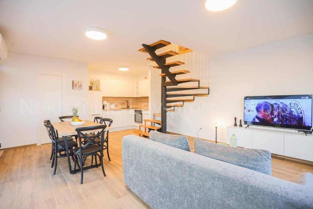 Na prodaju je moderna kuća s privatnim bazenom, smještena u mirnom stambenom dijelu Kaštel Lukšića. Objekt se sastoji od dvije etaže, svaka površine 40 m² (ukupno 80 m²), te je orijentiran na sve četiri strane svijeta – jug, zapad, sjever i istok, što osigurava obilje prirodne svjetlosti i dobru prozračnost tijekom cijelog dana.