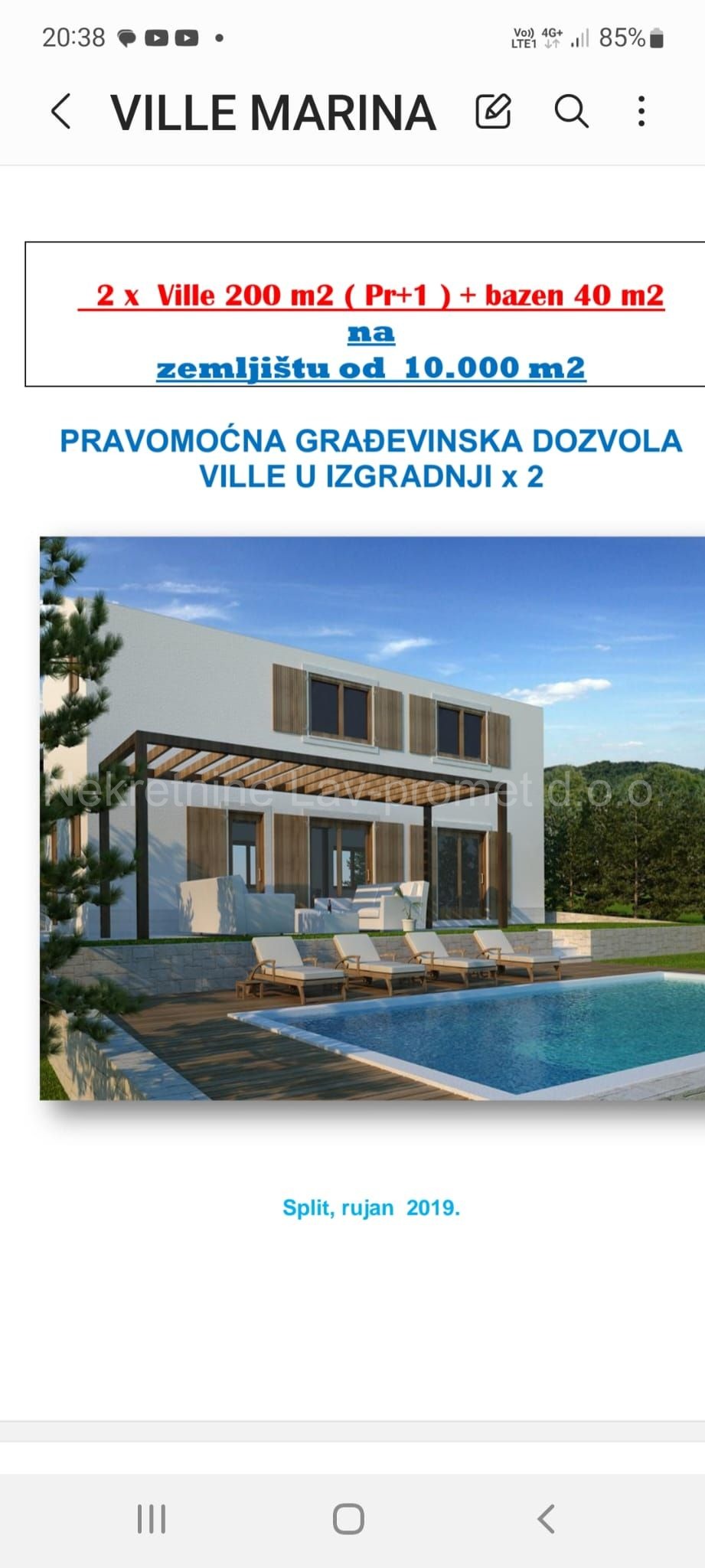 Opis: Na prodaju: Projekt za vilu s bazenom i građevinskom dozvolom – Marina, predio Vrsine (Trogir)
