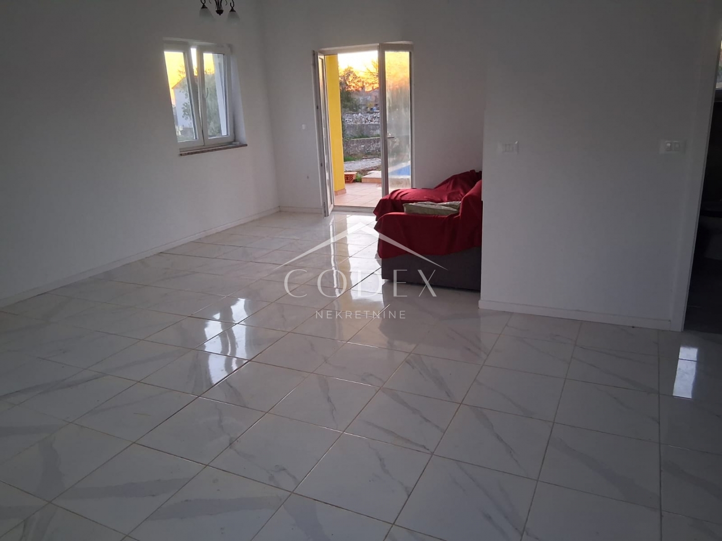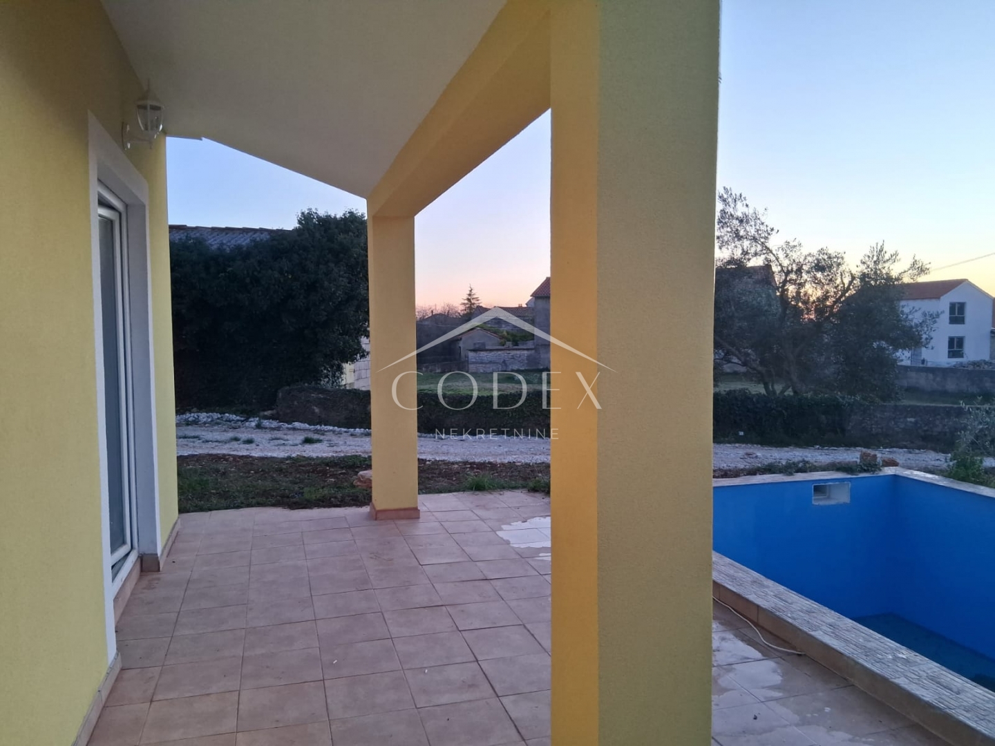 Nekretnina se sastoji od dnevnog boravka s kuhinjom i blagovaonom, iz kojih se izlazi na natkrivenu terasu od 9–10 m², dvije spavaće sobe i kupaonice. U dvorištu se nalazi bazen površine 21 m², idealan za ljetno osvježenje i opuštanje.