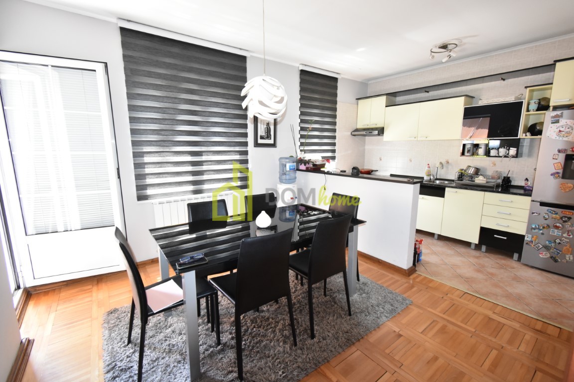 Struktura: ulazni hodnik, dnevni boravak, trpezarija i kuhinja, tri spavaće sobe, kupatilo i terasa.