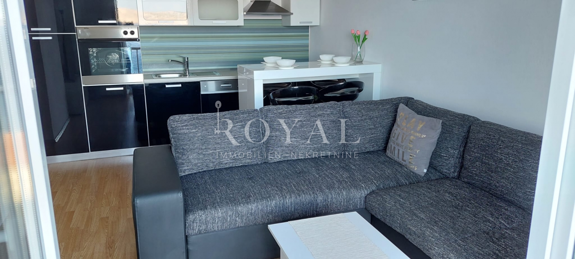 Stan se sastoji od funkcionalnog rasporeda te ima dva balkona s prekrasnim pogledom koji seže sve do Krčkog mosta. U potpunosti je renoviran – stan ima novu kupaonicu, nove instalacije, novu kuhinju, perilicu posuđa te novi kompletan namještaj. Prodaje se namješten ili nenamješten, prema želji kupca.