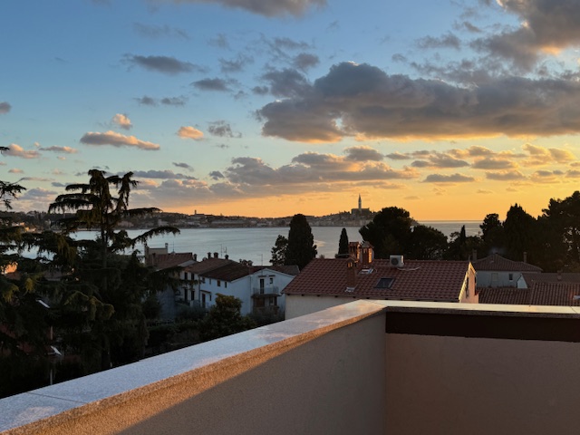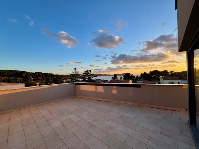 Opis (Engleski): Rovinj – an exclusive two-level duplex penthouse of 170 sq.m. with a private wellness zone and a panoramic sea view!Located in a peaceful part of Rovinj, just 200 meters from the coastline and a pleasant 25-minute walk from the famous old town, this elegantly designed duplex apartment is situated on the second floor of a high-quality modern building completed in 2012.Spanning two levels, the penthouse offers exceptional comfort and a beautifully functional layout. The lower level features a spacious open-plan living area seamlessly connected to the kitchen and dining room, along with three comfortable bedrooms, each with its own bathroom, a guest toilet, and a utility room.The upper level is dedicated to a private wellness zone with amazing sea and Rovinj views....