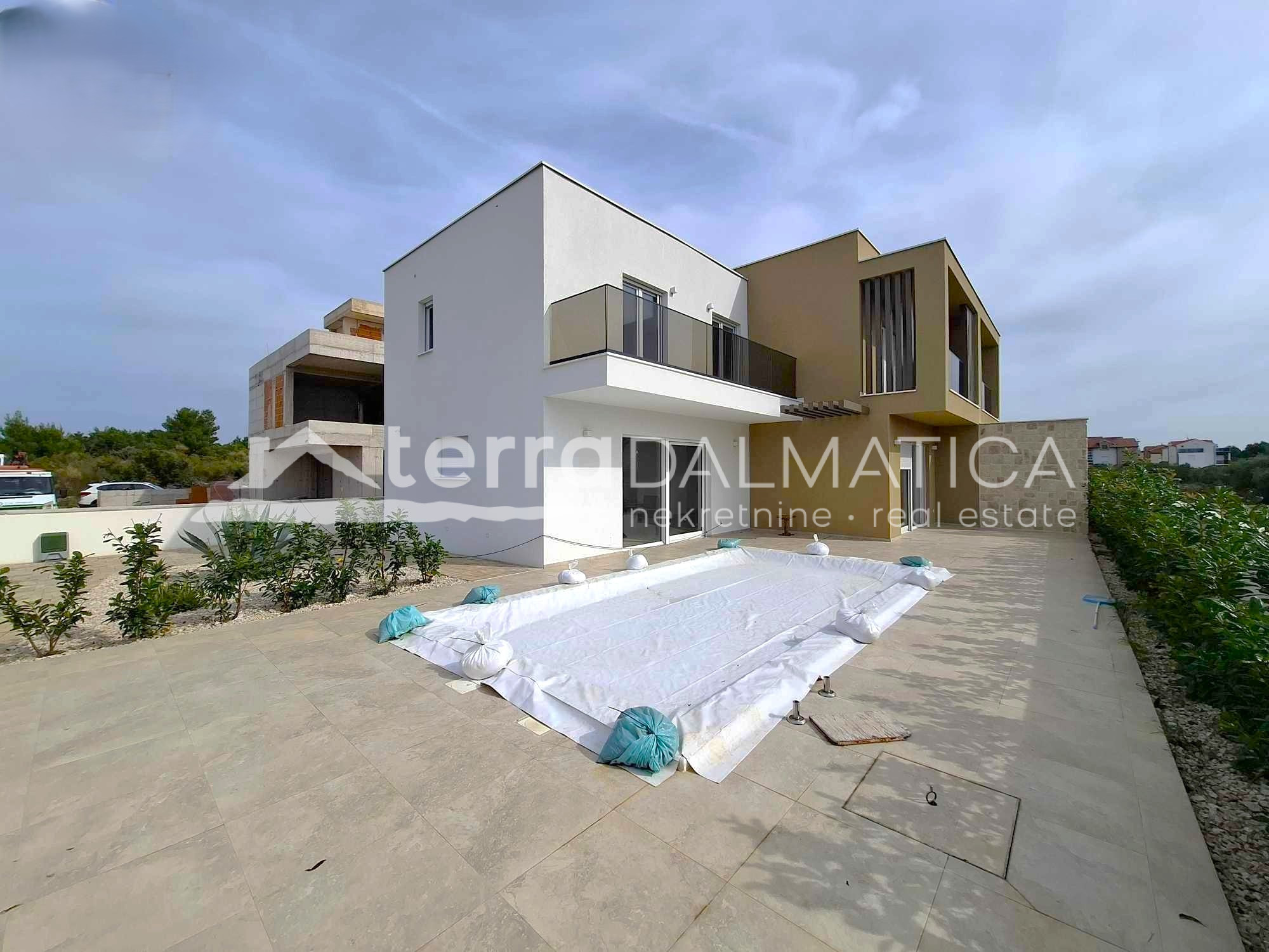 Opis: Prodaje se moderna dvojna kuća s bazenom na Srimi, pored grada Vodice. Smještena je na mirnoj lokaciji svega 250 metara od mora i plaže.