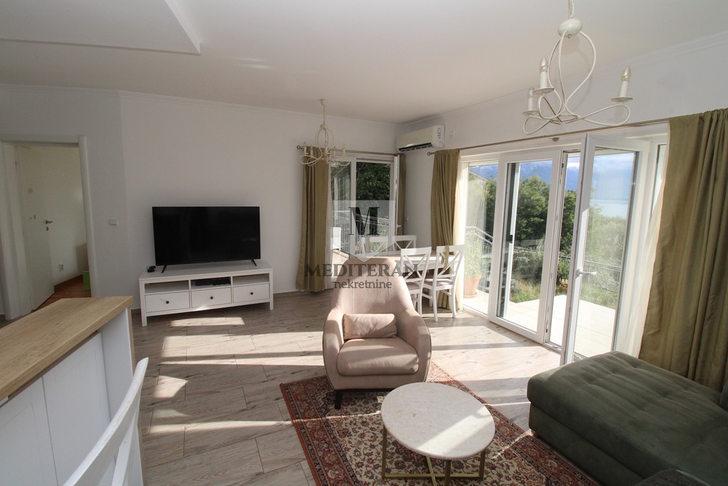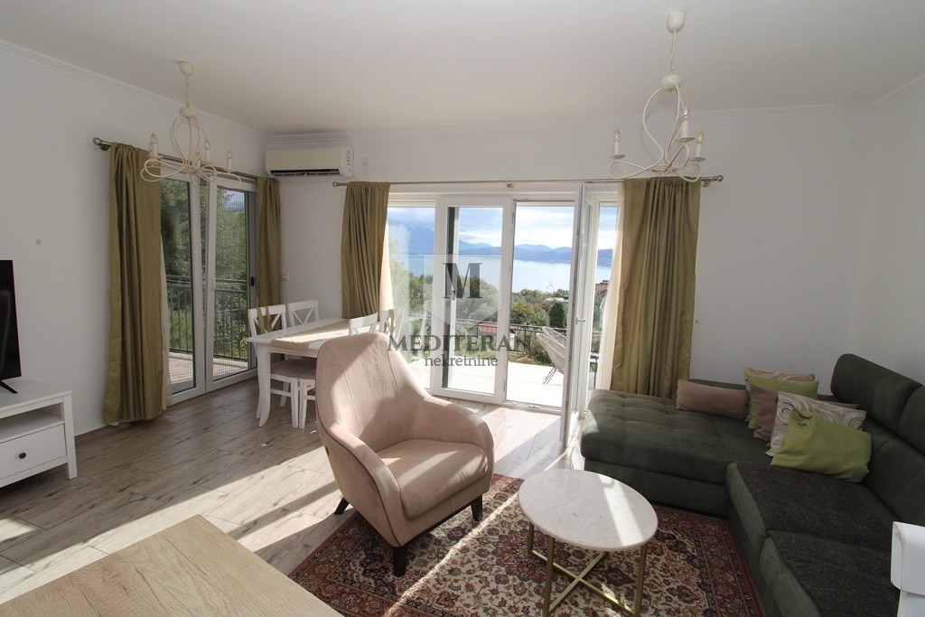 Opis: Herceg Novi – Baošići,namješten dvosoban stan površine 70m2 sa dvorištem i pogledom na more.