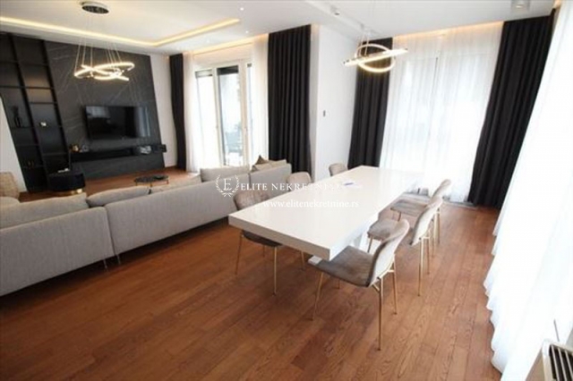 Odličan stan u srcu Vračara, u tihoj ulici nadomak Kalenić pijace i brojnih kafića i restorana. Idealna lokacija za udoban život, sa brojnim interesantnim sadržajima u okolini. Na desetak minuta vožnje je od uključenja na auto-put, kao i od centra grada. Upečatljiva nova zgrada koja pleni svojom fasadom, sa zajedničkim fitnes centrom, baštom i bazenom za stanare zgrade. Stan je dupleks, smešten na šesti sprat zgrade i sastoji se od dnevnog boravka sa trpezarijom i kuhinjom iz jedne celine na prvom nivou. U ovom delu je i gostinjski toalet sa vešeraj prostorijom. Dnevni boravak ima izlaz na terasu sa pogledom na unutrašnje dvorište sa bazenom. Iz dnevnog boravka vodi prostrano stepenište ka drugom nivou gde je spavaći blok. Glavna spavaća soba ima svoje kupatilo sa tuš kabinom i izdvojenu garderober sobu. Druge dve spavaće sobe imaju izdvojen garederober deo i drugo kupatilo sa tušem. U jednoj od soba je i staklena galerija. Stan je namešten novim, modernim nameštajem. Na raspolaganju je i parking mesto u garaži zgrade.