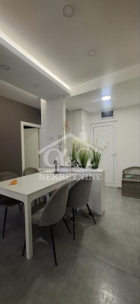 Opis: Trosoban kompletno renoviran i lepo opremljen stan na Aerodromu. Struktura: hodnik, kupatilo, dnevni boravak koji ima izlaz na terasu, trpezarija, kuhinja, dve spavaće sobe. Stan je renoviran 2023. god. kad je urađena izolacija plafona i spuštanje plafona, kompetna instalacija, rekonstrukcija kupatila podova i zidova, na radijatorima zamenjeni ventili. Izvanredno lepo uređen prostor i osmišljen enterijer. Stan se prodaje sa novim nameštajem i elektro uređajima koji su u garanciji. Dvanaesti sprat u zgradi sa liftom. Centralno grejanje. Dobra lokacija, u blizini škole, obdaništa, marketa, odlično za pordični život. Šifra oglasa: 1615-1