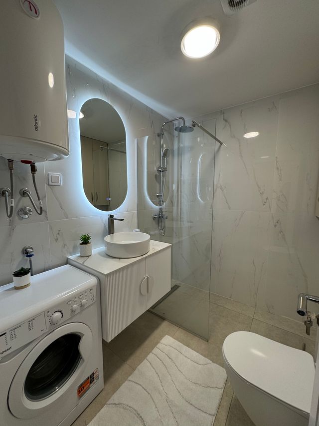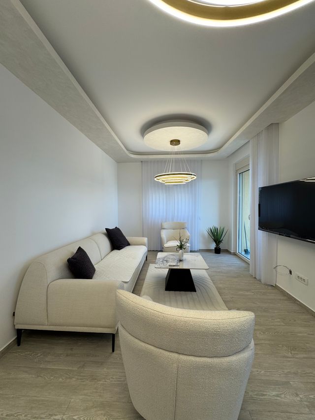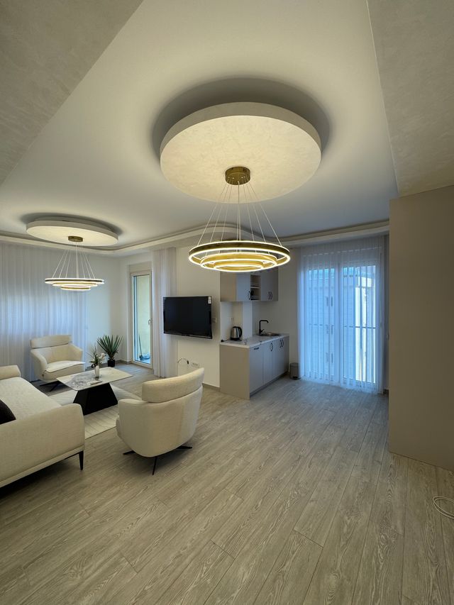 Opis: Prodaje s nov i luksuzno namješten dvosoban stan 74m2 u novoj zgradi Fab Live u Bečićima. Stan se nalazi na sedmom spratu,a iz njega se pruža pogled na more koje je udaljeno 500m od ove nekretnine. Struktura stana: hodnik, prostrani dnevni boravak, kuhinja i trpezarija u nastavku, dvije spavaće sobe, dva kupatila i terasa. Stan je jako prostran i prozračan, radi se o izuzetno kvalitetnoj nekretnini sa odličnim potencijalom za investiciju. Nalazi se na traženoj i atkraktivnoj lokaciji, neposredna blizina plaže i svih potrebnih sadržaja za život ili iznajmljivanje. Cijena nije fiksna, postoji mogućnost korekcije, ili zamjene za odgovarajuće stanove ili automobile.