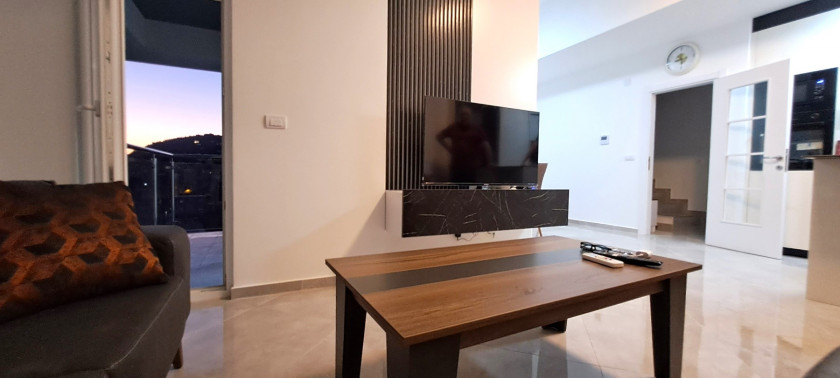Opis: Izdaje se luksuzan trosoban dupleks stan na duži period, smješten svega 200 metara od Šušnjaške plaže, sa izvanrednim pogledom na more koji dominira cijelim stanom i prostranom terasom. Na prvom spratu nalazi se moderna kuhinja, prostrani dnevni boravak i elegantna terasa sa koje se uživa u panorami mora, uz dodatni toalet. Na gornjem spratu smještene su tri klimatizovane spavaće sobe, svaka opremljena televizorom, kao i prostrano kupatilo, što omogućava potpunu udobnost i privatnost. Luksuzna oprema, funkcionalan raspored i blizina plaže čine ovaj stan idealnim za porodični život i dugoročno stanovanje. Takodje uz stan je moguce iznajmiti i garazu.