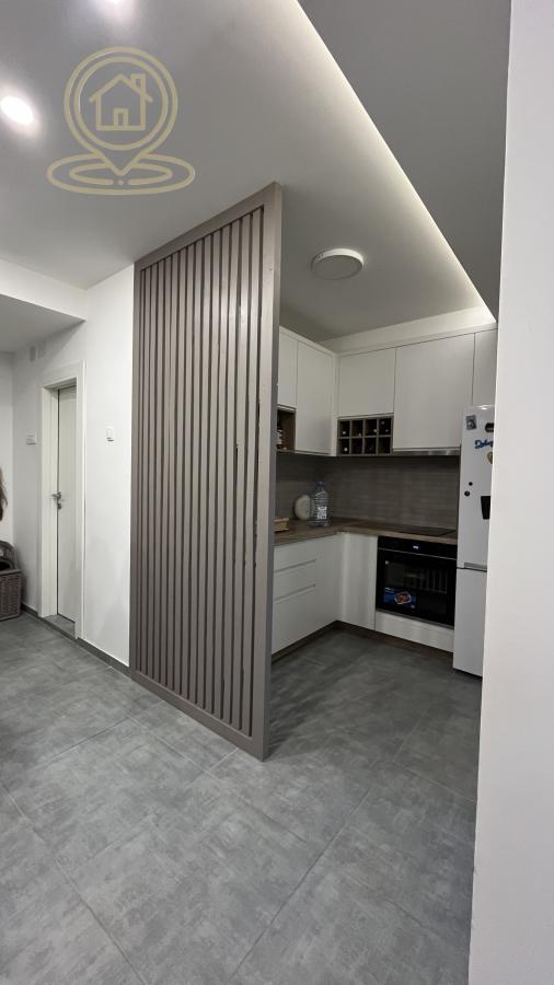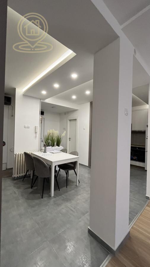 Stan ima odličan raspored i sastoji se od dve sobe, prostrane dnevne sobe povezane sa trpezarijskim delom, nove potpuno opremljene moderne kuhinje i renoviranog kupatila. Opremljen je centralnim grejanjem i klimom, što obezbeđuje komfor tokom cele godine. Tokom renoviranja urađena je kompletna zamena elektro i vodovodnih instalacija, podova, stolarije, keramike i sanitarija, tako da stan izgleda kao nov. Nameštaj je moderan i pažljivo uklopljen, stvarajući prijatan i topao ambijent.