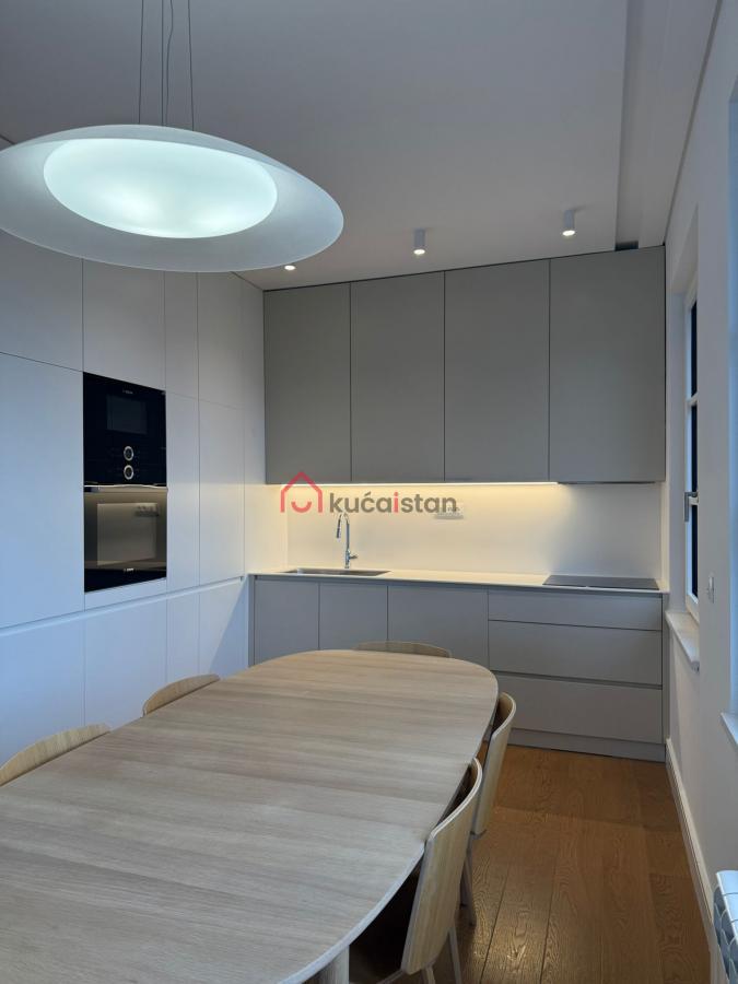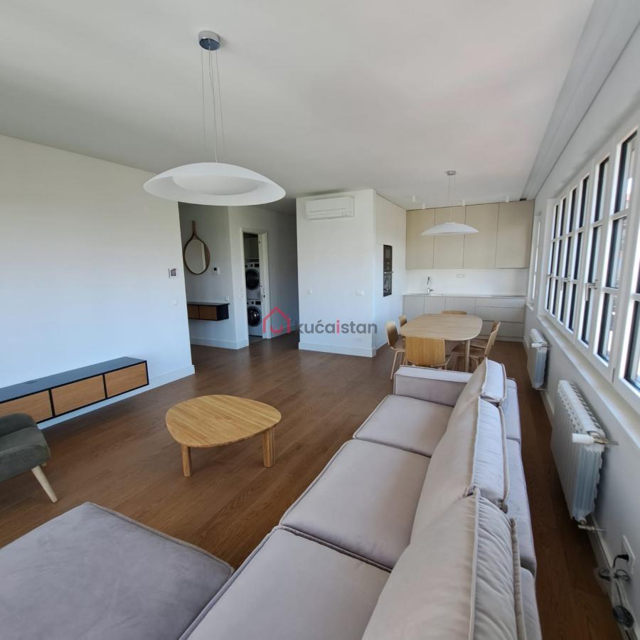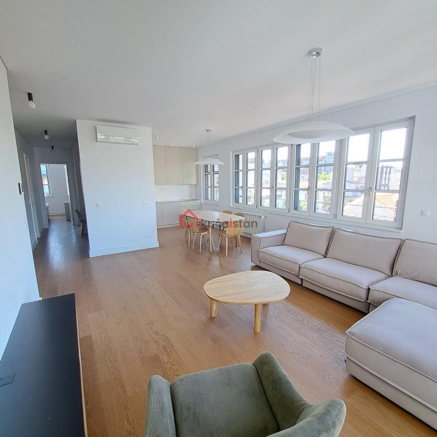 Opis: Kneza Miloša Residence – this apartment truly impresses with its size and style. The three-room layout includes a spacious living room with floor-to-ceiling windows, providing abundant natural light and an open, airy feel.