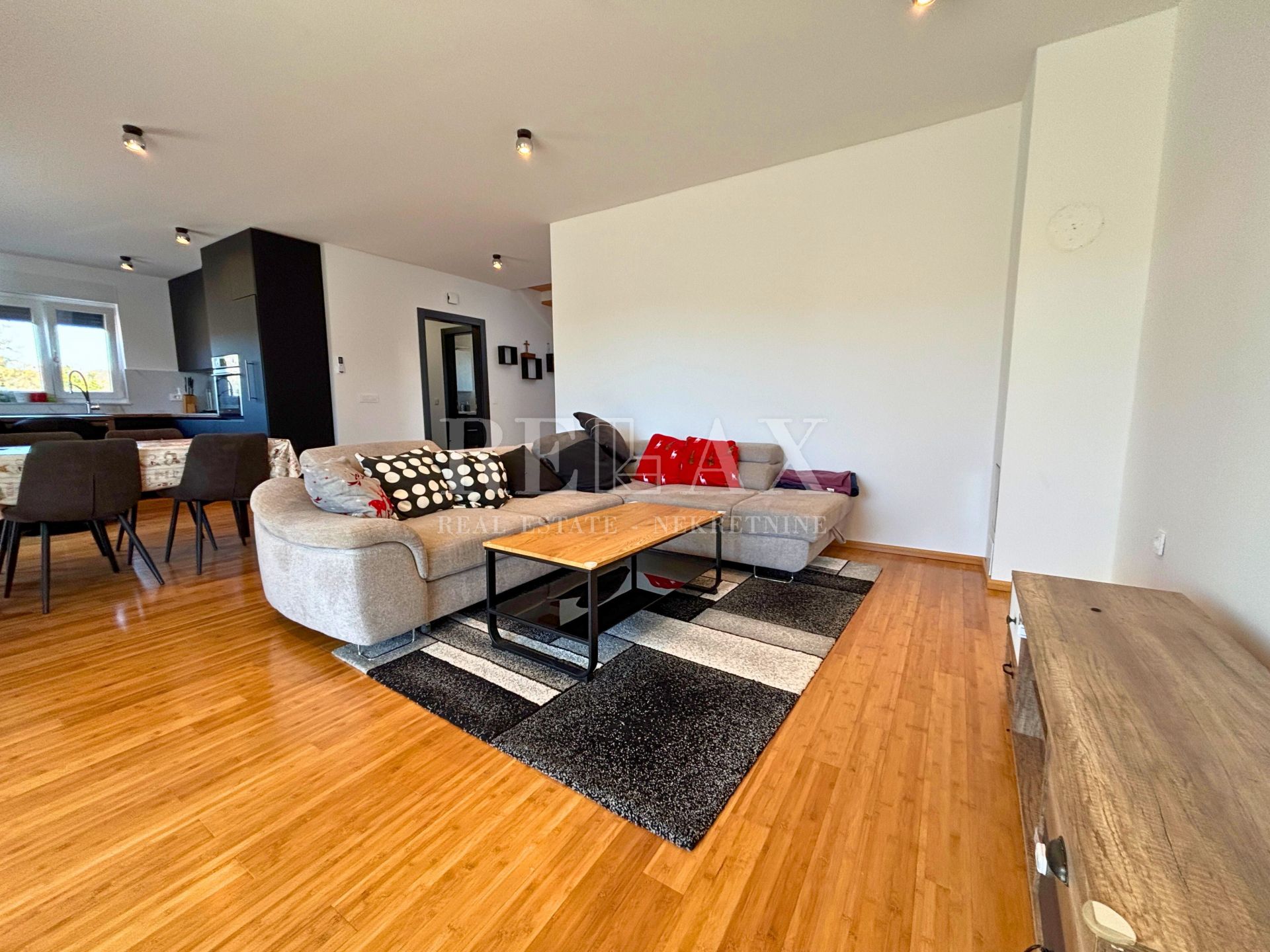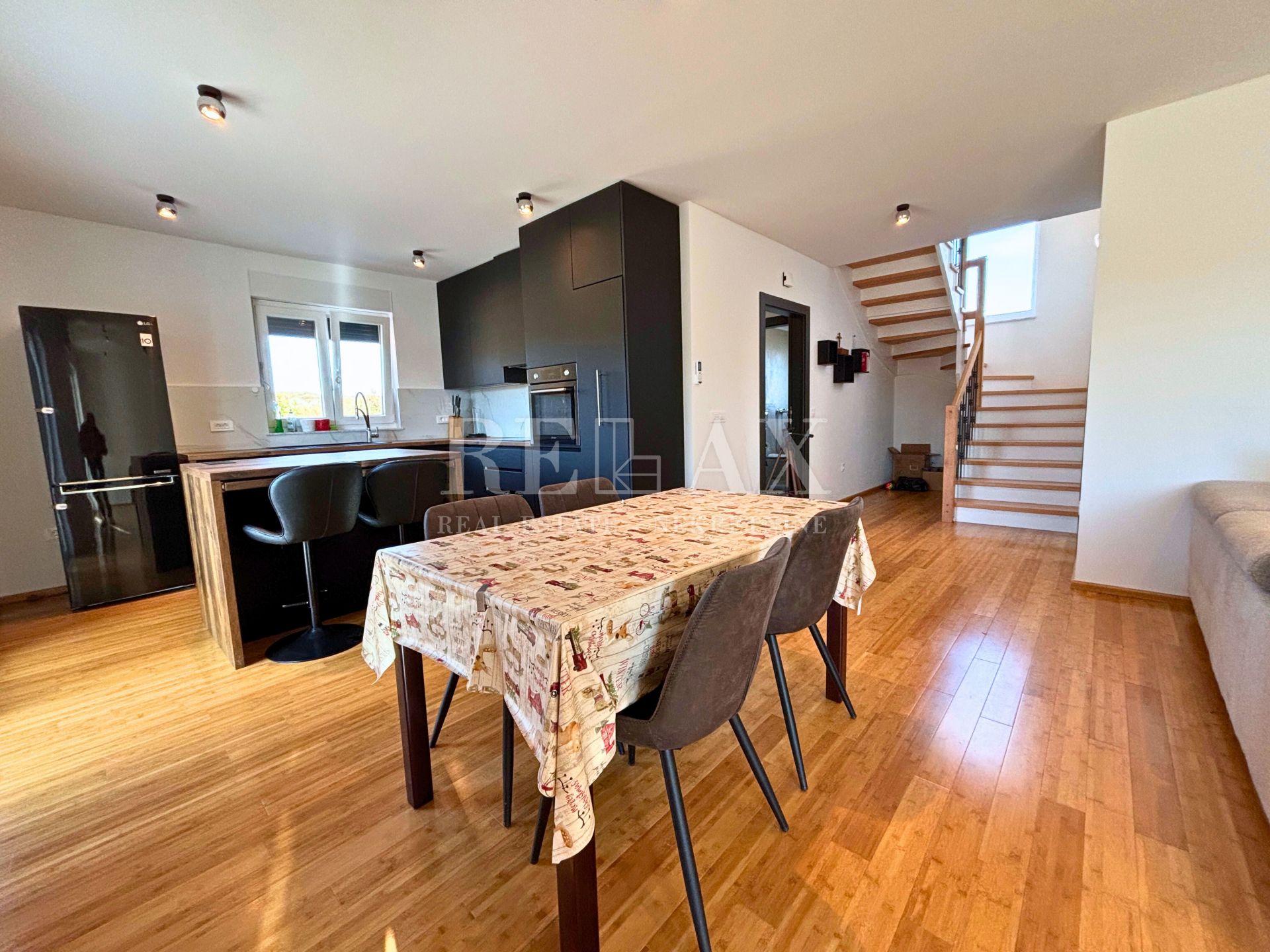 Nekretnina se sastoji od prizemlja i kata. U prizemlju se nalazi ulazni hodnik, ostava, kupaonica, jedna spavaća soba te prostran dnevni prostor otvorenog koncepta koji objedinjuje kuhinju s otokom, blagovaonicu i dnevni boravak s izlazom na terasu, idealnu za boravak na otvorenom.