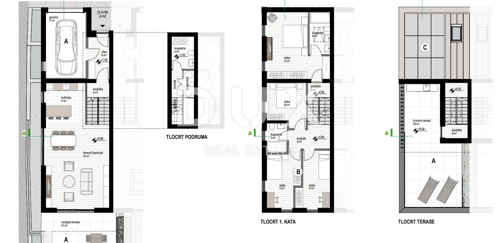 • Praktična arhitektura: Ulaz iz garaže u stambeni dio olakšava svakodnevni život, dok su svi aspekti dizajnirani pažljivo, od konstruktivnih rješenja do najsitnijih detalja.