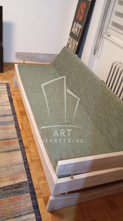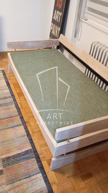 U predsoblju su dva velika ugradna plakara što omogućava dosta mesta za odlaganje. Zbog uštede prostora, u stanu je zidni bračni krevet, tzv. Murphy bed sa novim dušekom, sofa na razvlačenje sa novim tapacirom, klima, šporet, frižider, veš mašina, TV.. Oko zgrade je javni parking koji je slobodan, a stanarima je na raspolaganju i pripadajući podrum.