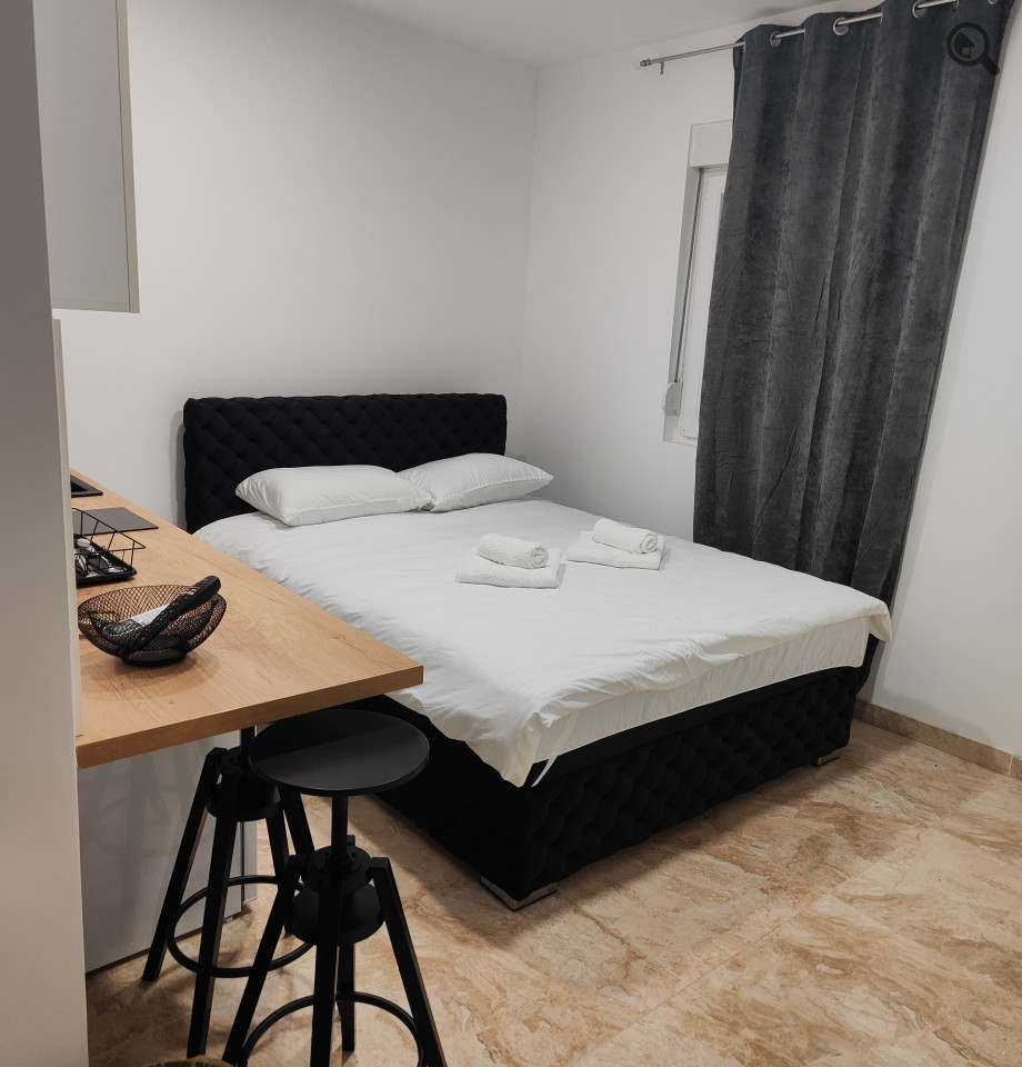 Opis: Hera 3 je apartman koji se nalazi u Trgovačkoj ulici broj 40 u Žarkovu. Smešten je na prvom spratu stambene zgrade. Po strukturi je studio apartman, ima 18 m² i idealan je za komforan i udoban boravak do dve odrasle osobe. SadržI sobu opremljenu bračnim krevetom, a u sklopu nje nalazi se i čajna kuhinja opremljena svim neophodnim elementima – šporetom, frižiderom, posuđem i escajgom. Kupatilo je u potpunosti opremljeno. Od dodatnog sadržaja gostima su na raspolaganju besplatan Wi-Fi, flat-screen TV sa kablovskim kanalima, čisti peškiri i posteljina. Lokacija apartmana je odlična – u blizini se nalaze McDonald’s, prodavnice i nekoliko kafića. Postoji besplatan parking ispred zgrade, ali mesto nije rezervisano. Ukoliko rezervišete apartman sa opcijom samostalnog prijavljivanja (self check-in), vlasnik može zahtevati uplatu celog iznosa rezervacije unapred, pre vašeg dolaska. Objekat je pod spoljnim video-nadzorom. Dozvoljeni su kućni ljubimci uz dodatnu naknadu od 10 € po rezervaciji za jednog ljubimca. Za više ljubimaca cena je na upit. Postoji opcija dnevnog odmora na upit u periodu od 11 do 14 h, po ceni od 28 €. Dobrodošli u apartman Hera 3!