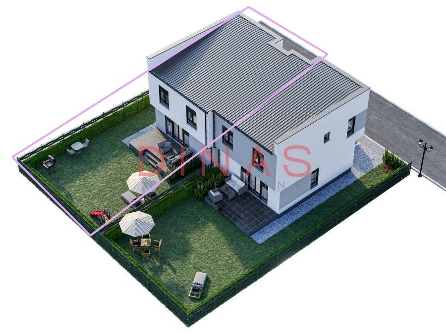 Nalazi se u blizini škole, vrtića i sportske hale. Prizemlje: prostran dnevni boravak sa terasom, kuhinja, kupatilo i ostava. Na spratu se nalaze tri komforne spavaće sobe i kupatilo. Visina plafona iznosi 3m.