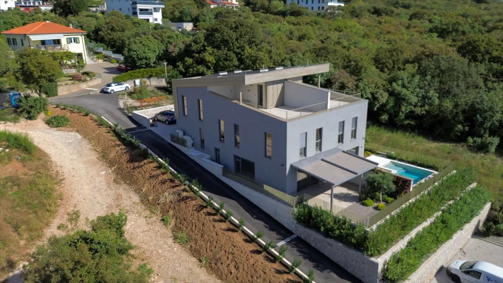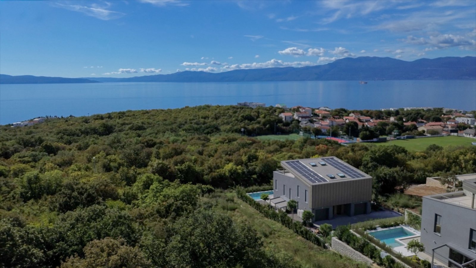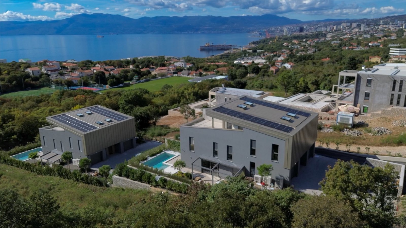 Opis (Engleski): An exceptional opportunity to buy a modern house in Croatia with a panoramic sea view—this exclusive newly built semi-detached home in Kostrena offers premium design, energy efficiency, and a fantastic coastal lifestyle. With 198 m² of living space on an 88 m² plot, the property is ready to move into immediately and stands out as an ideal house in Croatia to buy either for year-round living or as a high-yield investment.Designed as a low-energy home, the property is equipped with its own solar power plant that fully covers energy consumption, including heat pumps, pool heating, and everyday appliances. This advanced system ensures significant long-term savings and a sustainable lifestyle. High-quality materials such as the Prefa roof and Cortizo exterior joinery guarantee durability and minimal maintenance. The modern design includes a private pool with two swimming levels, a jacuzzi, attractive outdoor terraces, and elegant architectural details created to support comfort, practicality, and aesthetic appeal.The interior layout is perfectly planned for modern living....