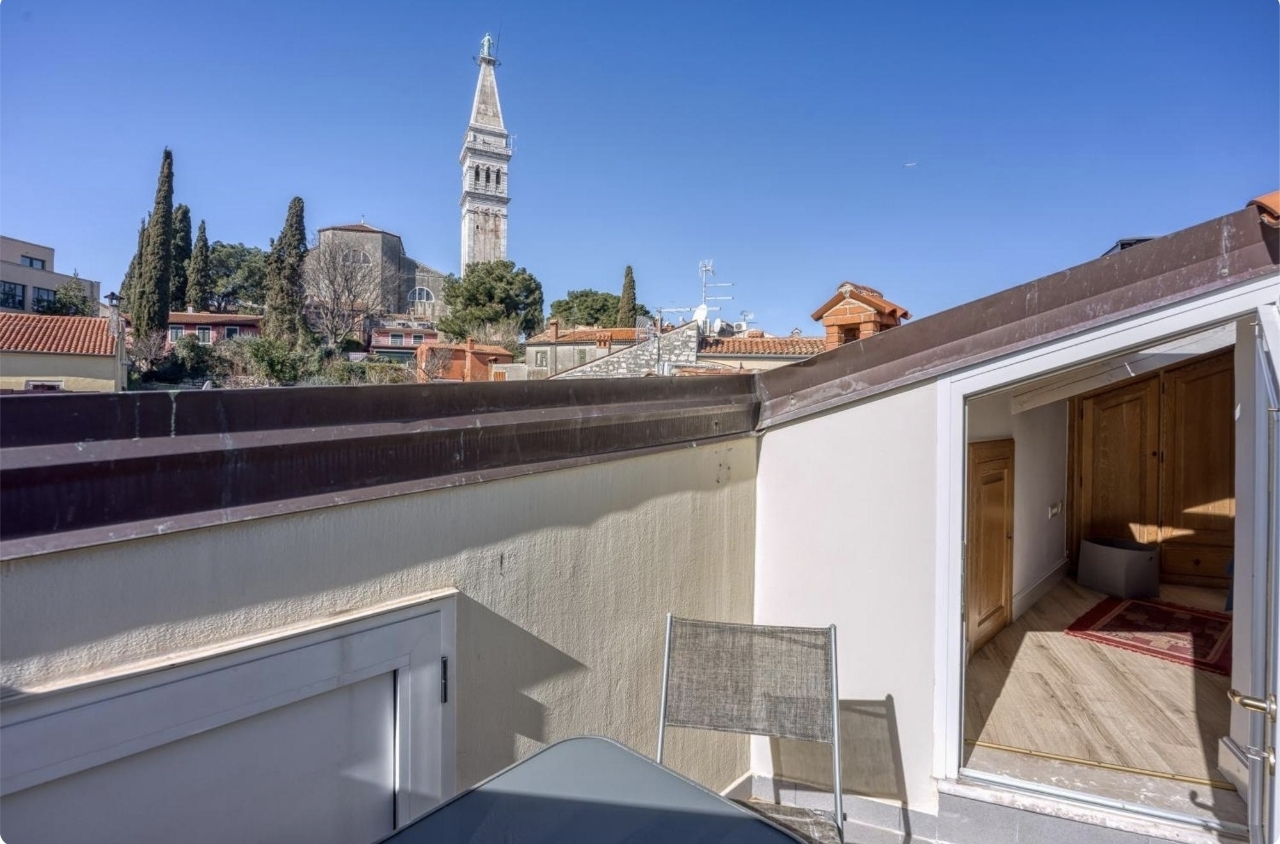 Opis (Engleski): Penthouse in Rovinj Old Town – 75.4 m² with Sea View, Only 60 m from the Waterfront!Rovinj is one of Croatia’s most developed and sought-after tourist destinations, renowned for its picturesque streets, romantic atmosphere, and timeless Mediterranean charm. It has attracted visitors for decades, many of whom return year after year.This two-bedroom apartment is located in the heart of Rovinj’s Old Town, within a small, intimate building of only four apartments. The property features an open-plan kitchen with a dining and living area, two bedrooms, and a bathroom, with a total living space of 75.4 m². A roof terrace expands the total area to 90 m² and offers stunning sea views.The apartment is equipped with air conditioning for both heating and cooling and was fully renovated in 2005. Situated just 50–60 meters from the sea and all essential amenities, it is ideal for everyday living or as a high-potential investment for tourist rentals....
