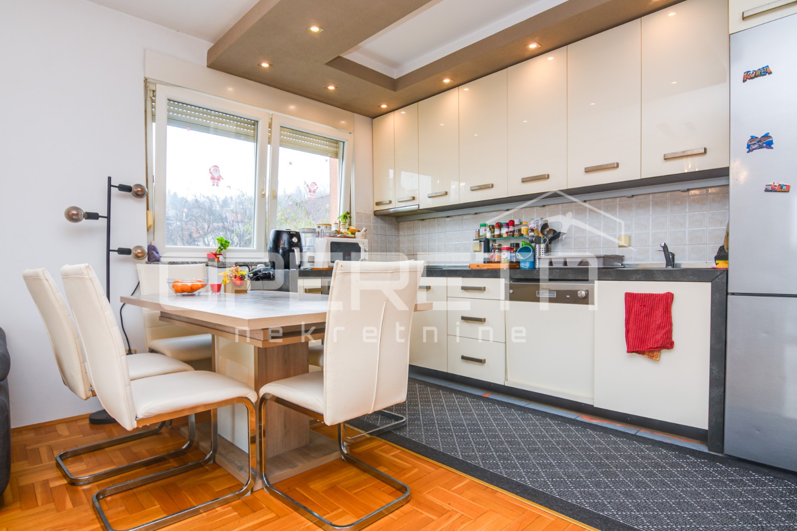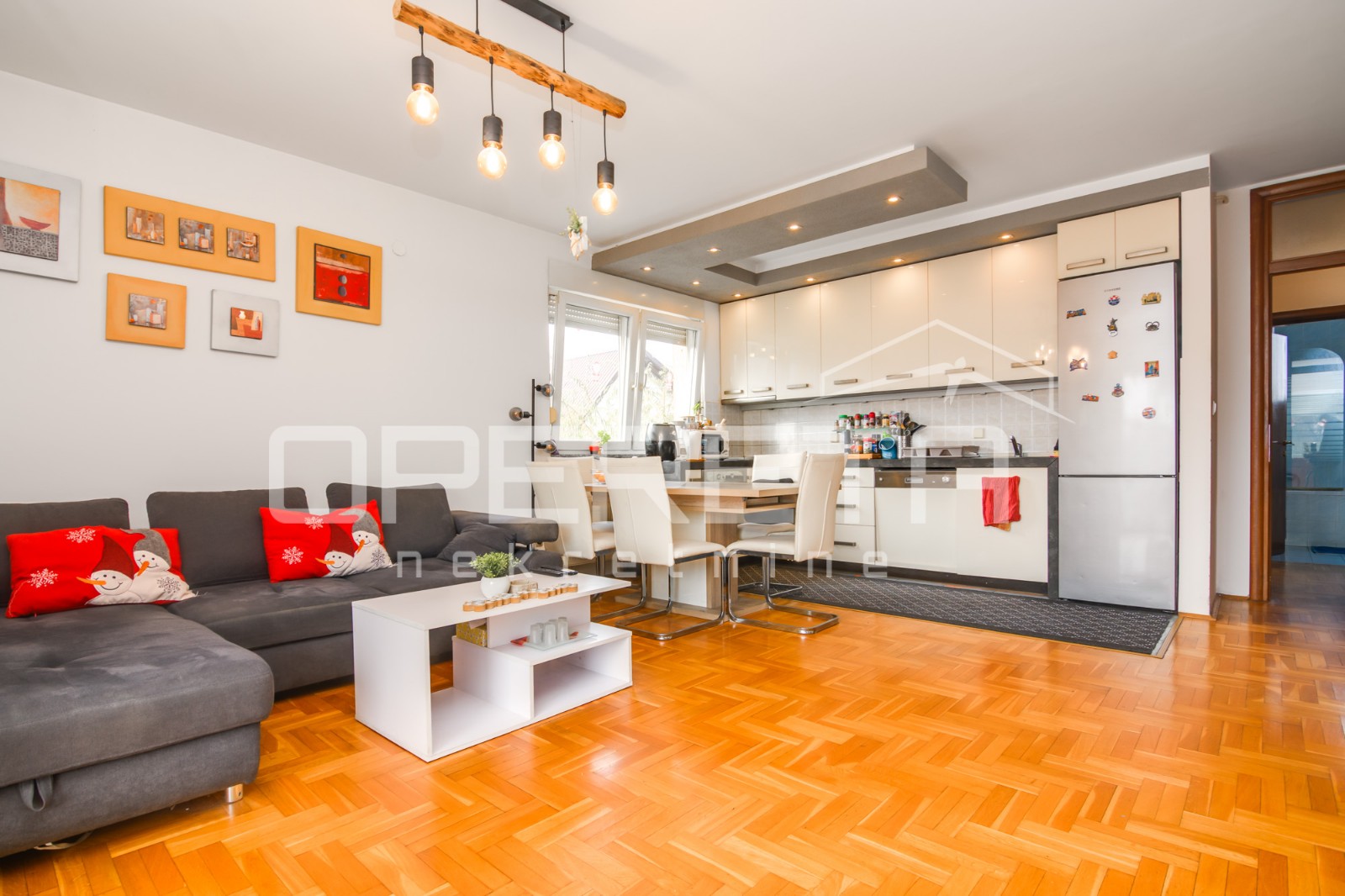 Opis: PRODAJA, Gornje Vrapče, kompletno namješten stan 2019godine, 51 m2 netto stambenog prostora i 2 parkirna mjesta.4 minute autom do Ilice.Na prodaju predivan stančić, kompletno uređen i spreman za useljenje, kojem pripadaju 2 parking mjesta u vlasničkom listu i malo spremište.Sastoji se od ulaznog širokog hodnika koji vodi u spavaču sobu sa ugradbenim ormarima, u kupaonu i prostran dnevni boravak s kuhinjom, staklenom stijenom prema natkrivenom balkonu. Stan je divnog rasporeda i prozračan, te pruža mogućnost za još jednu malu sobu ukoliko je potrebno.Vlasništvo je uredno i moguće je kupiti putem kredita. Zgrada ima uporabnu dozvolu i energetski certifikat B.