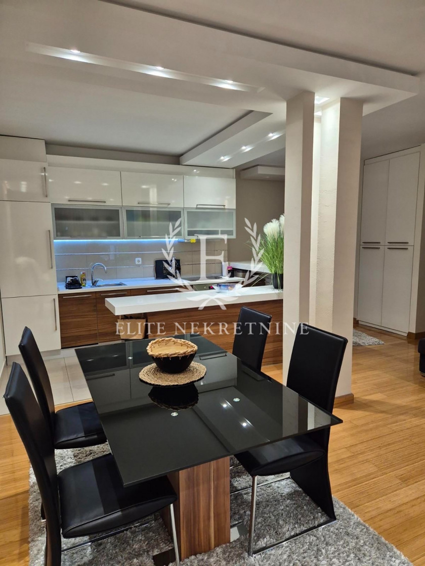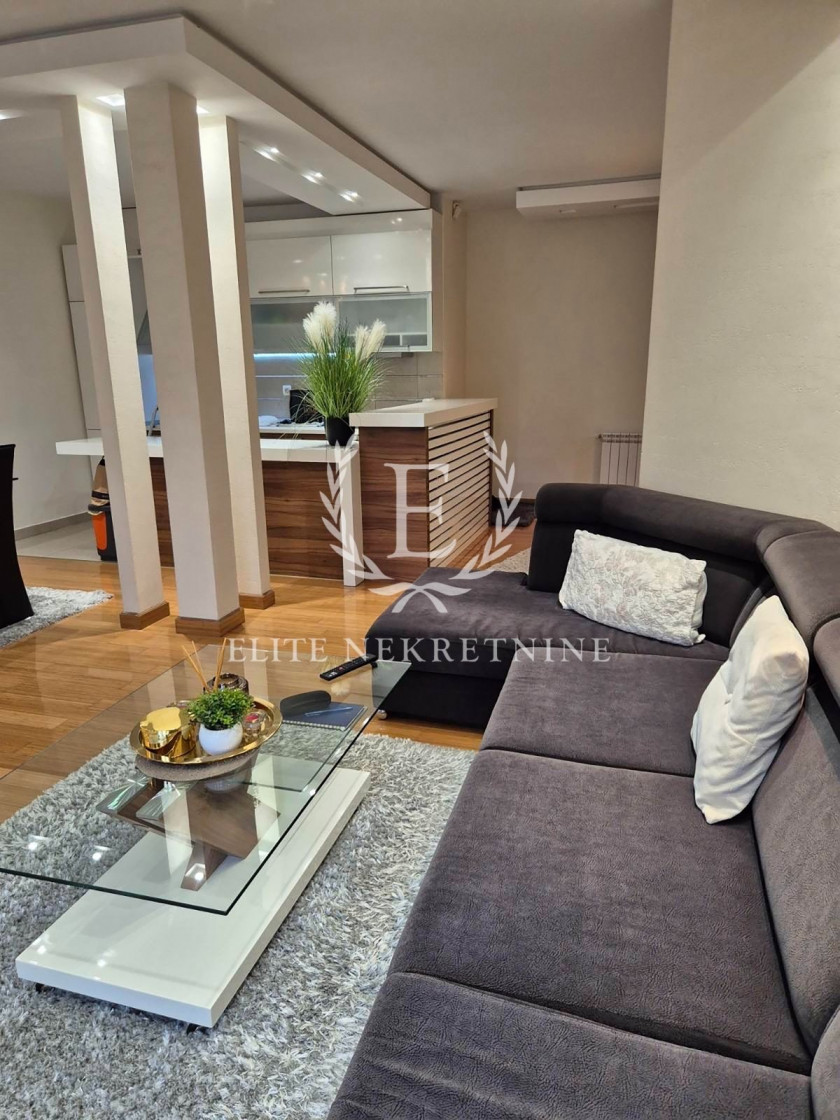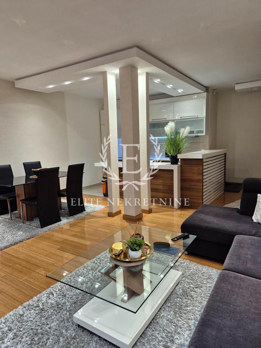 Opis: Na Dedinju, u mirnom i prestižnom delu grada, izdaje se luksuzno opremljen dvosoban stan od 65 m² koji se nalazi u prizemlju i poseduje sopstvenu baštu površine 60 m². Stan odiše elegancijom i udobnošću, pažljivo uređen do najsitnijih detalja, spreman za useljenje bez dodatnih ulaganja. Prostran dnevni boravak povezan je s modernom kuhinjom i trpezarijom, dok veliki stakleni otvori pružaju obilje prirodne svetlosti i direktan izlaz u prelepo uređenu privatnu baštu – savršeno mesto za uživanje u miru i tišini.