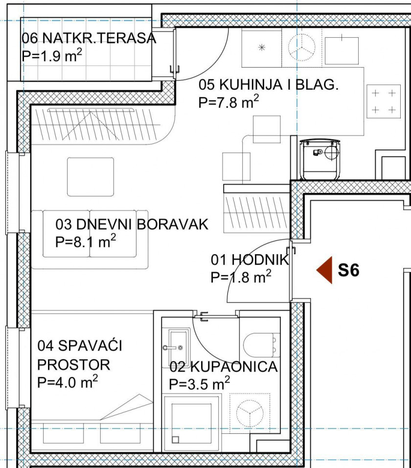 Ova moderno osmišljena garsonjera ima površinu od 27 m² te uključuje vlastito parkirno mjesto površine 15 m² — uključeno u cijenu!