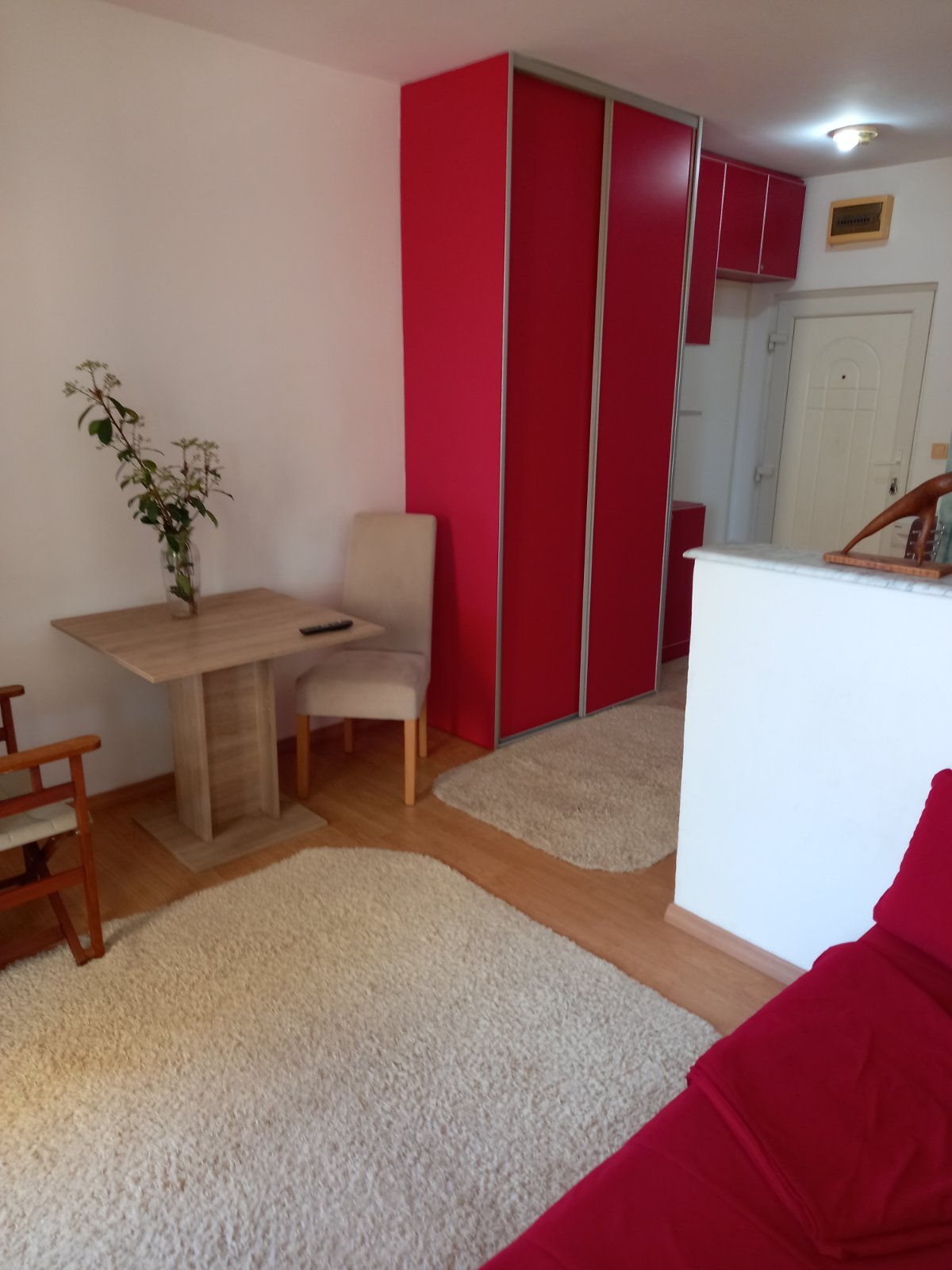 Opis: Svijetao i ugodan studio apartman od 22 kvadratna metra u blizini Mega Malla. Kuhinjski prostor je odvojen pregradom, tu je veliki ormar za odlaganje stvari i udobna sofa. Balkon, sa stolom i stolicama, savršen je za jutarnju kafu.