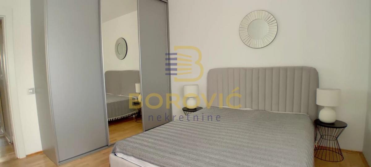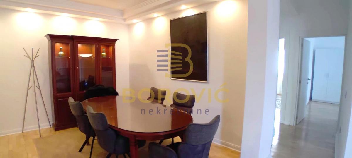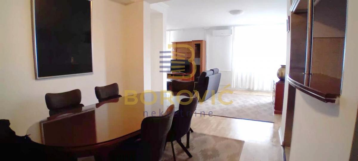 Stan je pozicioniran ka zelenoj unutrašnjoj strani dvorišta, što mu daje retku tišinu i atmosferu urbanog luksuza. Unutrašnjost je pažljivo renovirana i osmišljena tako da spoji funkcionalnost i sofisticiran stil. Prostran dnevni boravak povezuje se sa trpezarijom i potpuno novom, modernom kuhinjom, stvarajući harmoničan prostor za boravak i druženje. Jedna spavaća soba diskretno je povezana sa dnevnim boravkom, dok su preostale dve izdvojene u zasebnom delu stana, uz elegantno uređeno kupatilo, što obezbeđuje dodatnu mirnoću i privatnost. Pored kuhinje nalazi se i drugo, manje kupatilo.