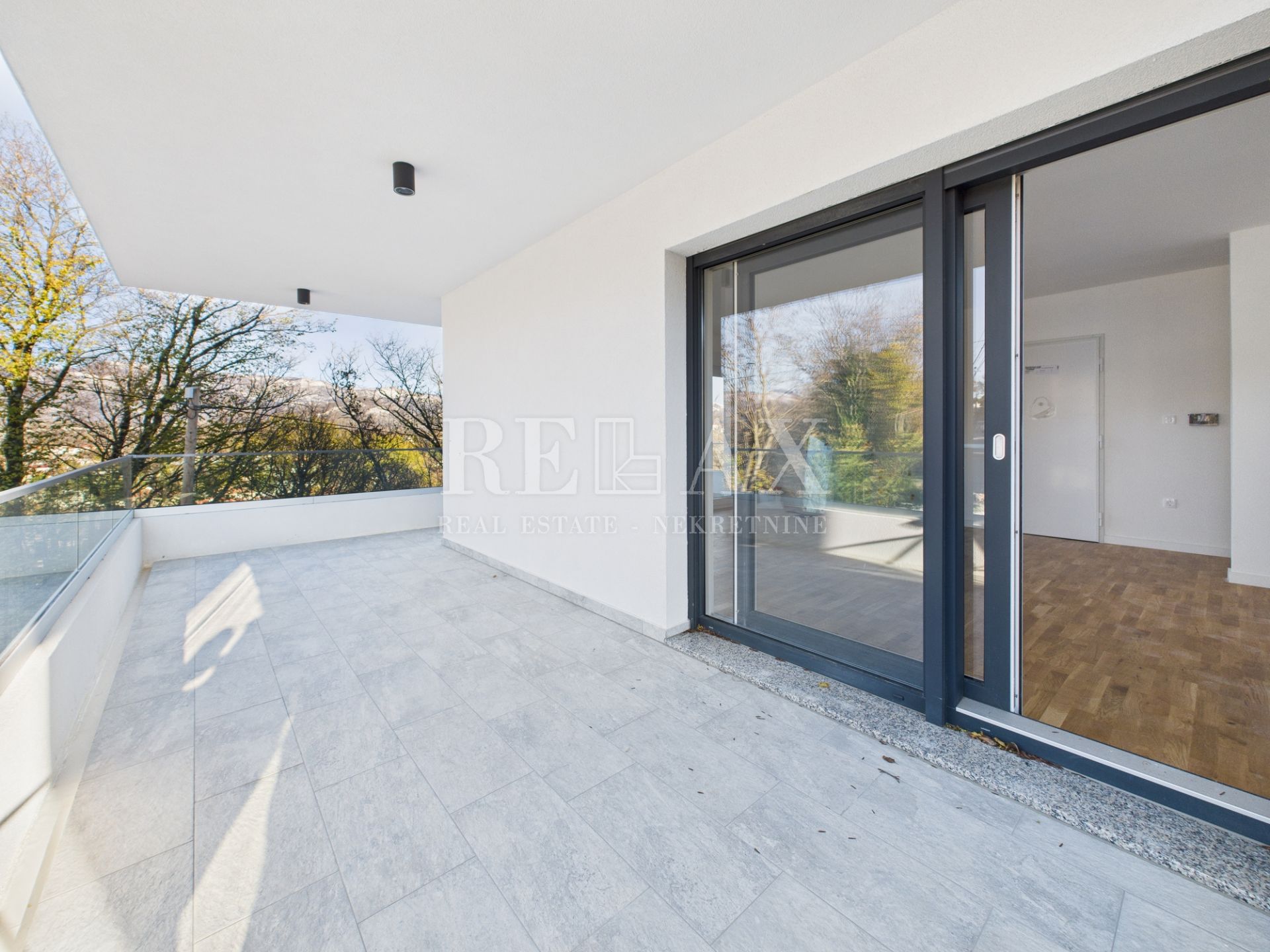 Stan se sastoji od dnevnog boravka otvorenog koncepta s blagovaonicom i kuhinjom, dvije spavaće sobe od kojih jedna ima predsoblje, kupaonice, unutarnjeg spremišta te natkrivenog balkona koji omogućuje uživanje u pogledu na zelenilo. Velike staklene stijene osiguravaju obilje dnevnog svjetla i povezanost unutarnjeg prostora s vanjskim dijelom, stvarajući ugodnu i svijetlu atmosferu tijekom cijelog dana.