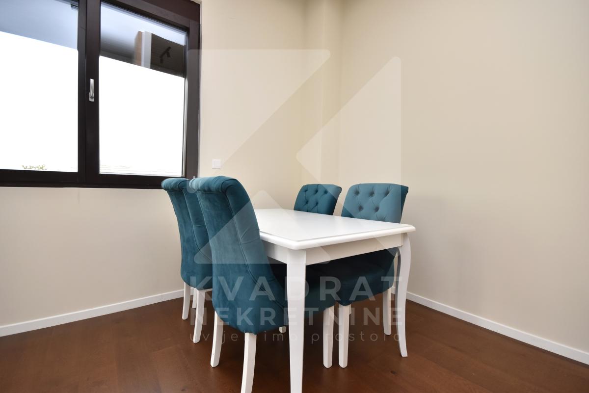 Struktura: ulazni hodnik, dnevni boravak, kuhinja, trpezarija, dvije spavaće sobe, kupatilo, toalet i terasa.