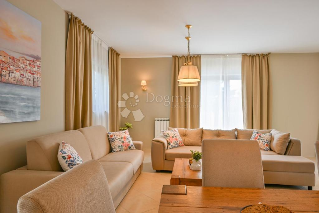 Sastoji se od *4 spavaće sobe*, prostranog dnevnog boravka, potpuno opremljene kuhinje (hladnjak, aparat za kavu i svi potrebni uređaji) te **3 kupaonice** s tušem i bideom. Nekretnina je u potpunosti opremljena za turistički najam (od ručnika do TVa) ..
