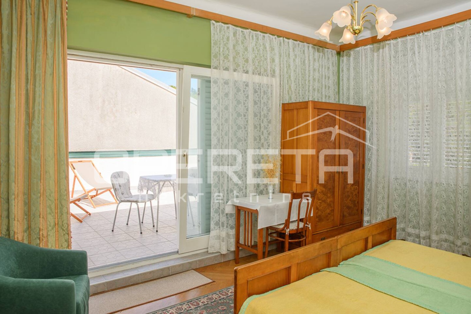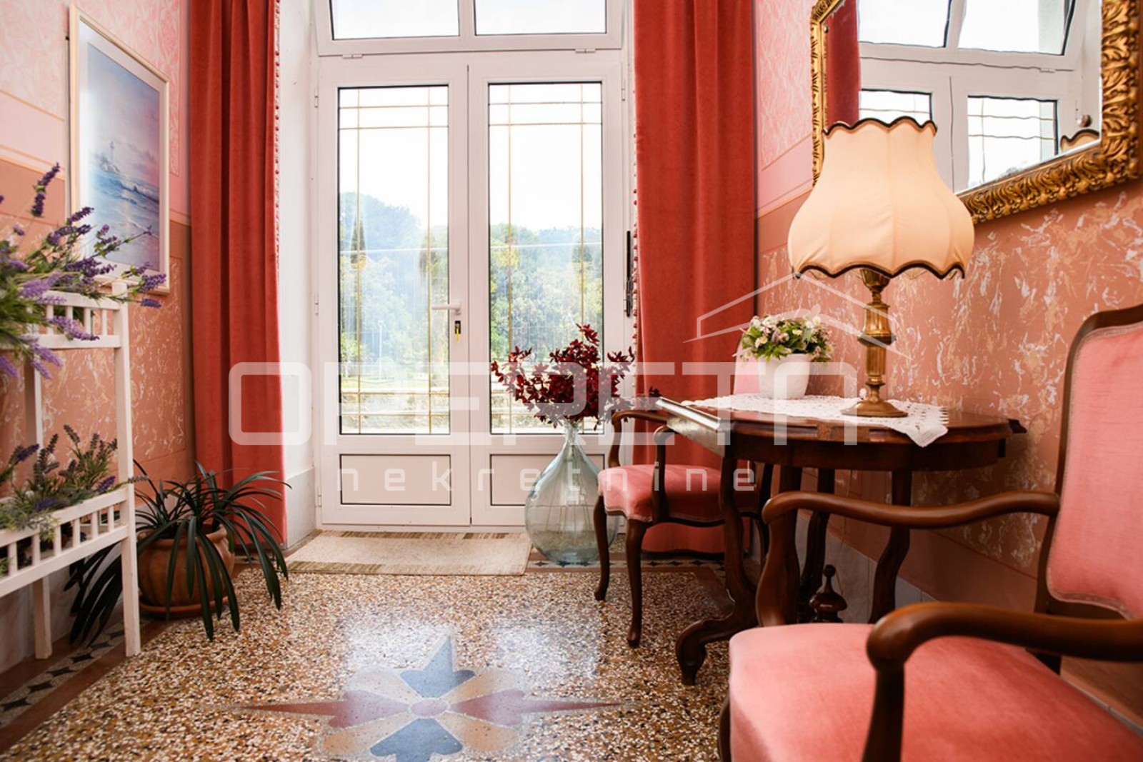 Opis: Autentična kamena vila u centru grada Raba – prostrana višekatnica s vrtom i pogledom na lukuU samom centru grada Raba nalazi se reprezentativna kamena vila iz 1931. godine, građena od masivnog kvalitetnog kamena i očuvana kroz desetljeća tako da i danas čvrsto stoji kao primjer stare gradske gradnje. Adaptirana je 2015. godine, kada su napravljeni zahvati na krovu (nove grede, daskanje ispod crijepa), uređeni dijelovi interijera i promijenjene instalacije struje. Zbog načina gradnje, kuća ljeti ostaje ugodno hladna bez potrebe za klimom. Vanjska stolarija je aluminijska, unutarnja je od ariša, a visine stropova kreću se oko 3 metra, dok je ulazni hodnik visok oko 4 metra.Vila se sastoji se od prizemlja, dva kata i potkrovlja te nudi ukupno više stambenih i pomoćnih prostora. U prizemlju se nalazi prostor od 40 m2 koji ima zaseban ulaz i pogodan je za budući poslovni sadržaj. Drugi dio prizemlja čini visoki ulazni hodnik (oko 4 m visine) koji vodi u dvosoban stan s dnevnim boravkom, spavaćom sobom, kuhinjom te kupaonicom s toaletom. Na istoj etaži nalaze se i dvije ostave....